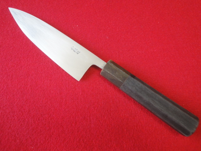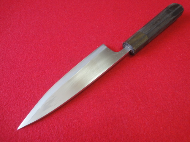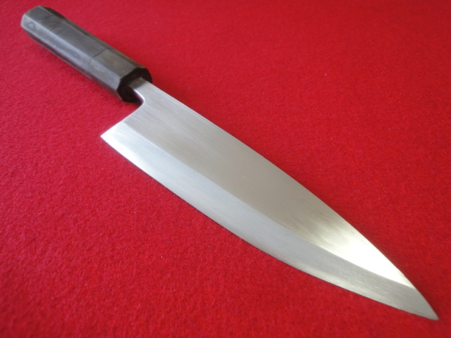 【無銘】※金鍛造 相出刃包丁 ※黒檀八角柄 刃渡16.2㎝ 全長30.3㎝ 峰厚5.4mm ※片刃 中古品 全国一律送料1100円