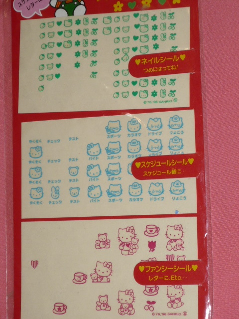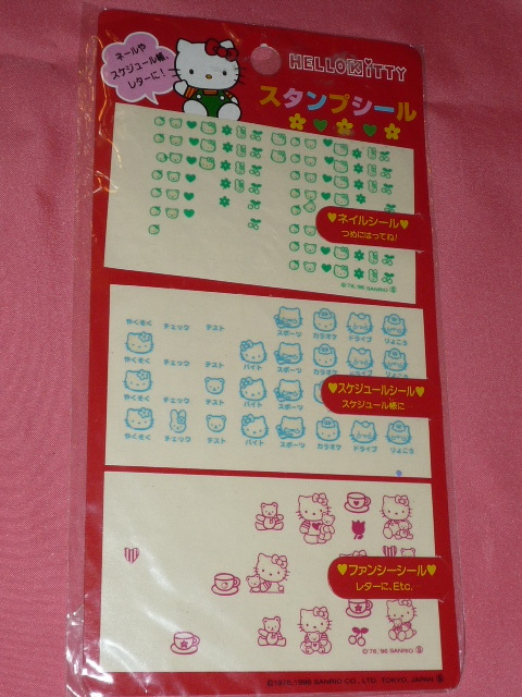 ☆商品説明☆ ご覧いただきありがとうございます^^ サンリオ ハローキティキャラクターのスタンプシールです。1996年、日本製。3分の1ほど使用済みですのでご了承くださいませ。レトロなキティちゃんキャラクターの絵柄でと~ってもかわいいですよ♪シート1枚の大きさはタテ 約5.4cm、ヨコ 約9.5cmです。たいへん古いものですがコレクション用として袋に入れたまま大切に保管していましたので、たいへん綺麗な状態だと思いますが家庭での保管になりますのでハートの絵柄数枚のみ袋にくっついており(※写真3枚目参照)、台紙裏側のテープ跡が変色しています(※写真4枚目参照)のでご理解いただける方のみご入札をお願い致します。 ☆発送方法☆ 定形外郵便、ゆうぱっく ☆コメント☆ ノークレーム、ノーリターンでお願いします。ご不明な点がございましたらお気軽にお問合わせ下さい。他にもハローキティキャラクターグッズたくさん出品しております☆ 良かったらご覧下さいね*^^*
