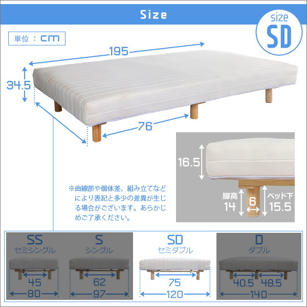 | 商品説明 | 商品名:脚付きロールマットレス ユニテ・ドゥ- ネイビー色 セミダブルサイズ 商品サイズ:(約)幅120x奥行195x高さ34.5cm 商品重量:33.1kg 梱包サイズ (2-1) (約)幅76×奥行38×高さ38cm (2-2) (約)幅103×奥行20×高さ24cm 梱包重量:36.1kg 素材 張り材:ポリエステル100% クッション材:ポケットコイルスプリング、ウレタン、フェルト、不織布 本体:LVL、パイン(脚) 耐荷重160kg お客様組立商品 商品画像は、デジタルカメラで撮影しておりますので、 お客様のPCモニターやインターネット環境の違いにより、 多少色合いが違って見えることが御座います。 予めご了承下さい。 |