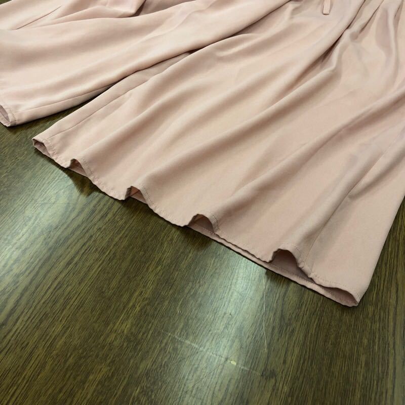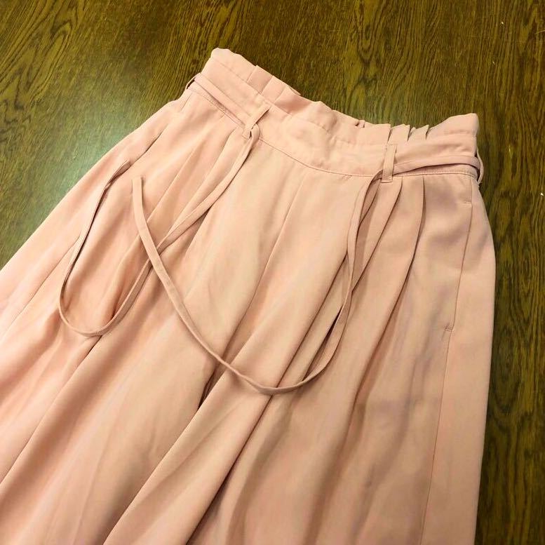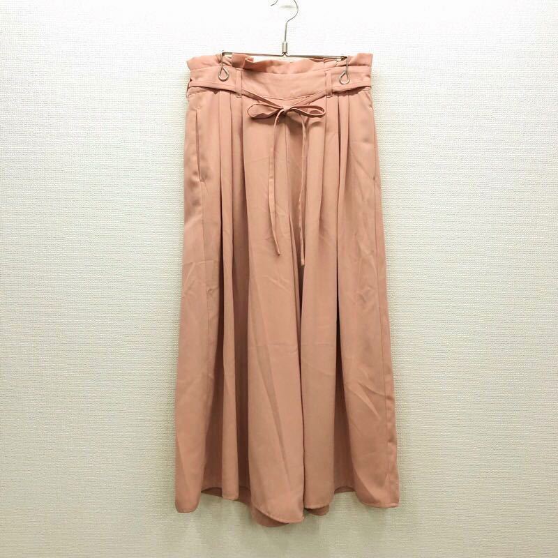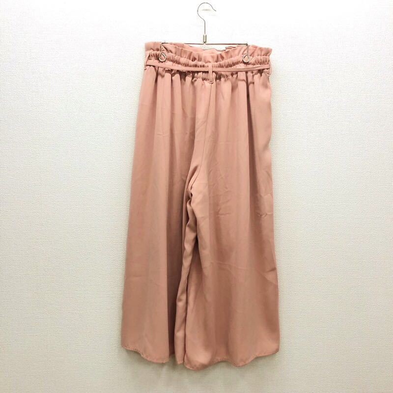 【く004】LOWRYS FARM リボンベルト付きワイドパンツ フリーサイズ ピンク ロング丈 無地 タック入り レディースブランド古着 送料無料