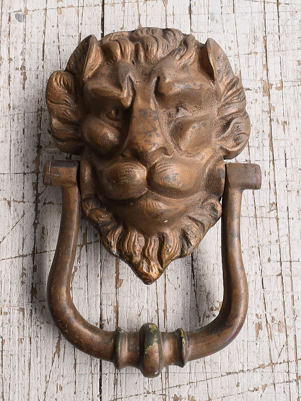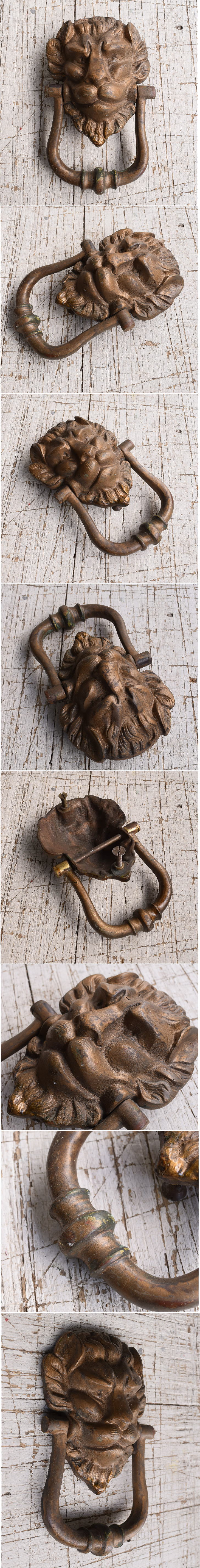 イギリス製の古い真鍮製のライオンヘッドドアノッカーです。 使いこまれた風合いがとても素敵です。 大きなダメージ無くコンディション良好です。