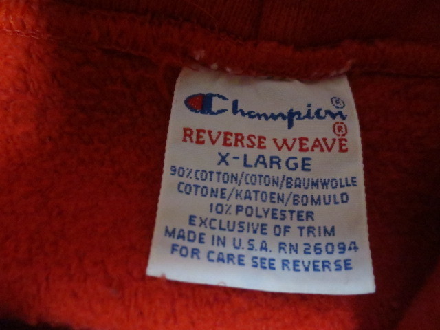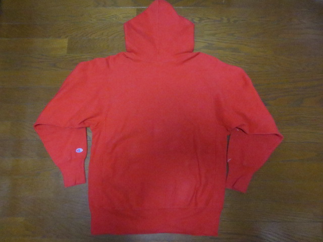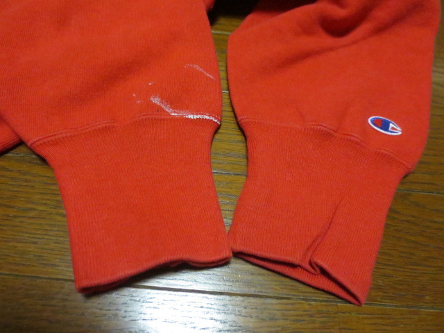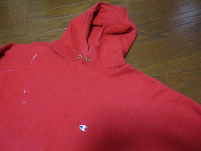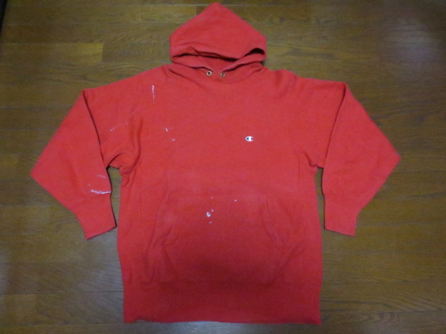 90's Champion REVERSE WEAVE MADE IN USA チャンピオンリバースウィーブ長袖スエットパーカー 赤系 XL アメリカ製 ペンキ跡 穴あり