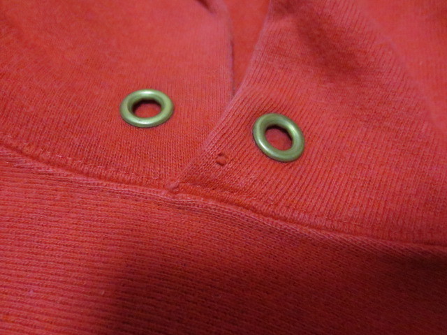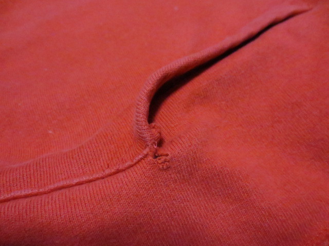 首元等に小穴等が、フロントポケット左側付け根辺りに穴、破れ等がございます(写真参照)。