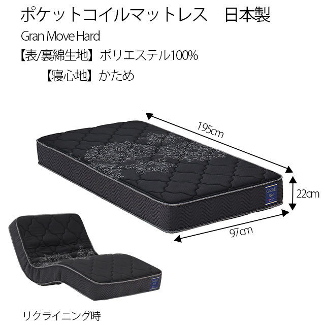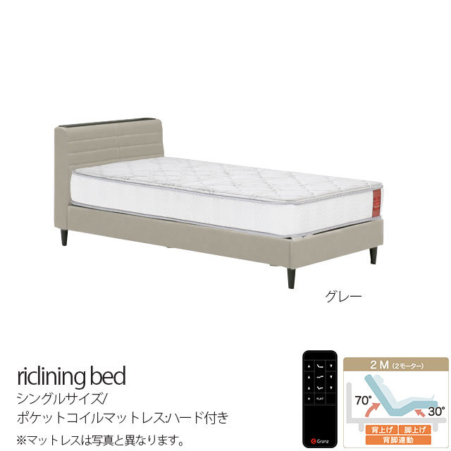 | 電動ベッド 2モーターシングル グレー ポケットコイルマットレス ハード ブラック <品番 gr182d> |
