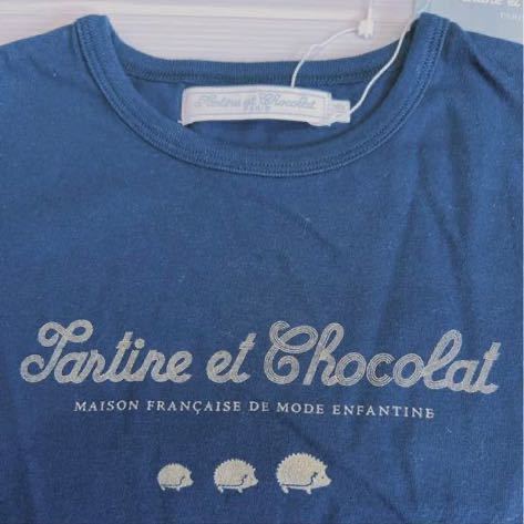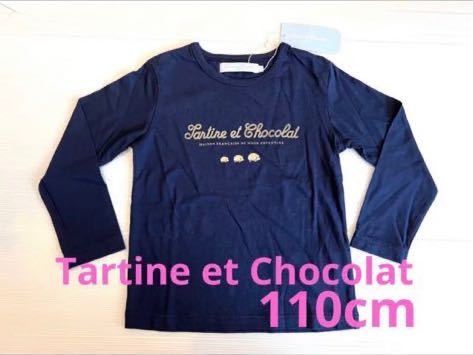ネイビー地にゴールドの字ロゴ、なんにでも合わせやすいTartine et Chocolat タルティーヌ エ ショコラ の長袖 カットソー Tシャツです。