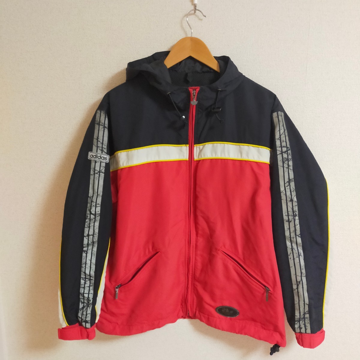 | adidas DESCENTE製 アディダス デサント製 90s ヴィンテージ ナイロンパーカー フーディ 3本ライン スリーライン M レッド(赤) | |