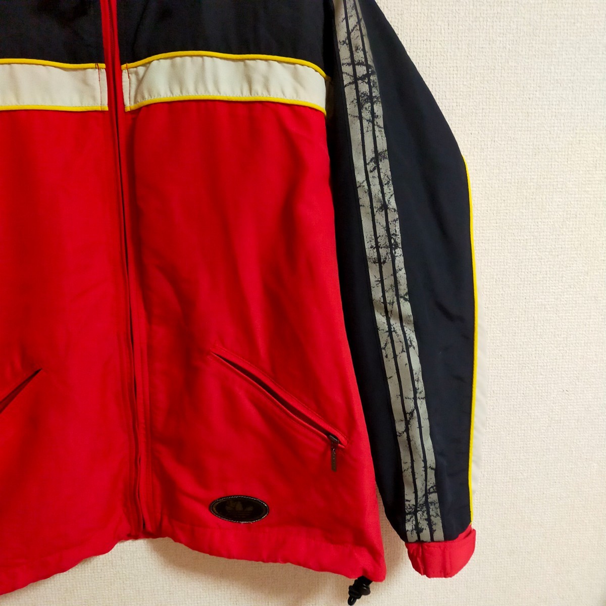 | 商品説明 | adidas DESCENTE製 アディダス デサント製の90s ヴィンテージ ナイロンパーカー フーディ 3本ライン スリーライン になります。 サイズ:M 実寸:肩幅51cm 身幅61cm 着丈69cm 袖丈58cmになります。 カラー:レッド(赤) 状態は多少使用感・汚れがあるが使用に問題のあるダメージはない商品です。 90年代感ムンムンのナイロンパーカーで ユーズドで購入しており新品時の状態がわかりませんので画像で確認ください。 スリーラインは全体的にかすれておりこれが最初からなのか劣化によるものなのか不明です。 カラーリングなどこの手の古着好きにはたまらない1着だと思いますので気に入った方へ是非! 前下のロゴ部分は劣化があります。 古い1着ですのでヴィンテージをご理解いただき 汚れや小ダメージなどご理解いただきご検討ください。 特に着用に問題のあるダメージはございませのですぐにご使用いただけます。 サイズはMですが結構大きめシルエットですので 実寸も参考にお願いいたします。 |