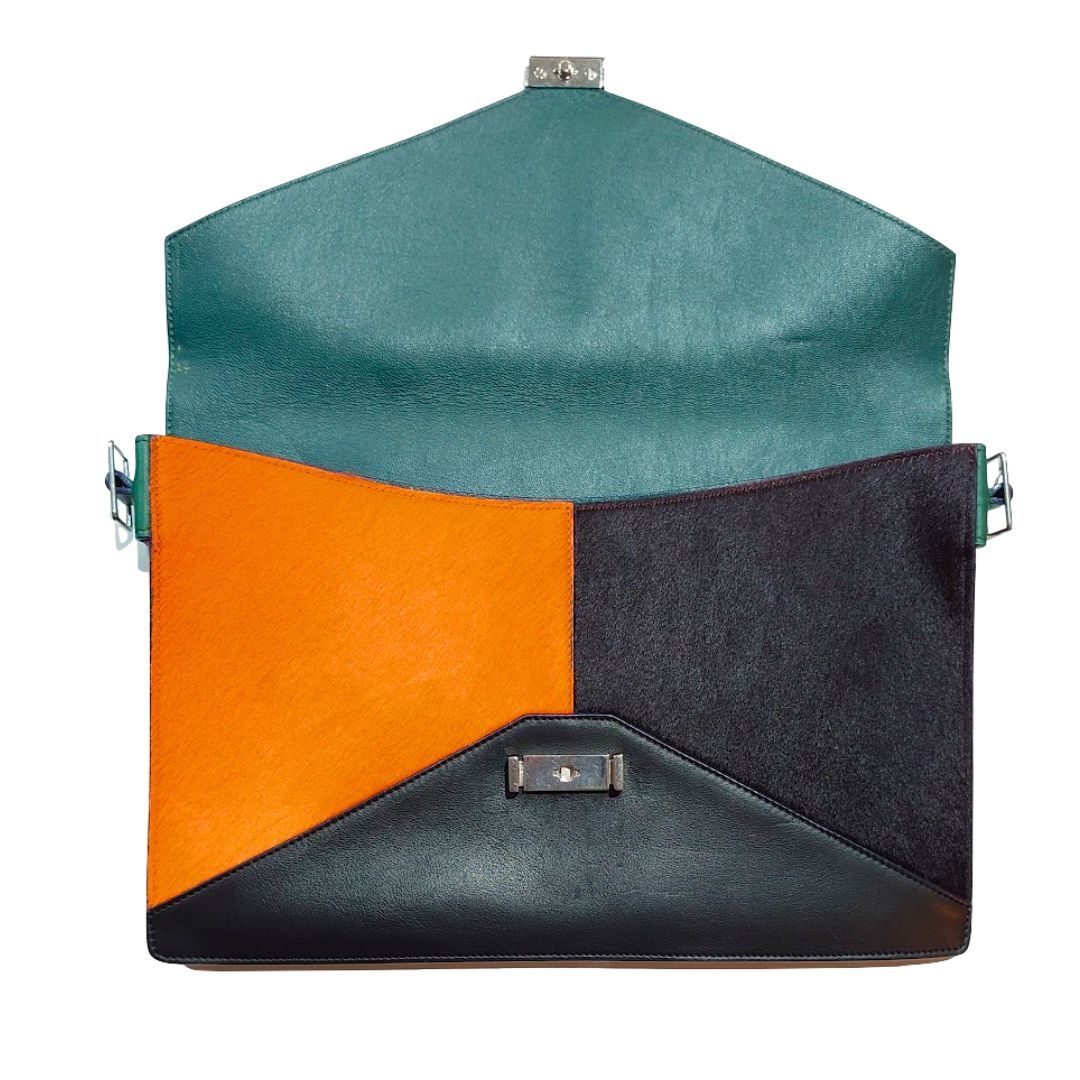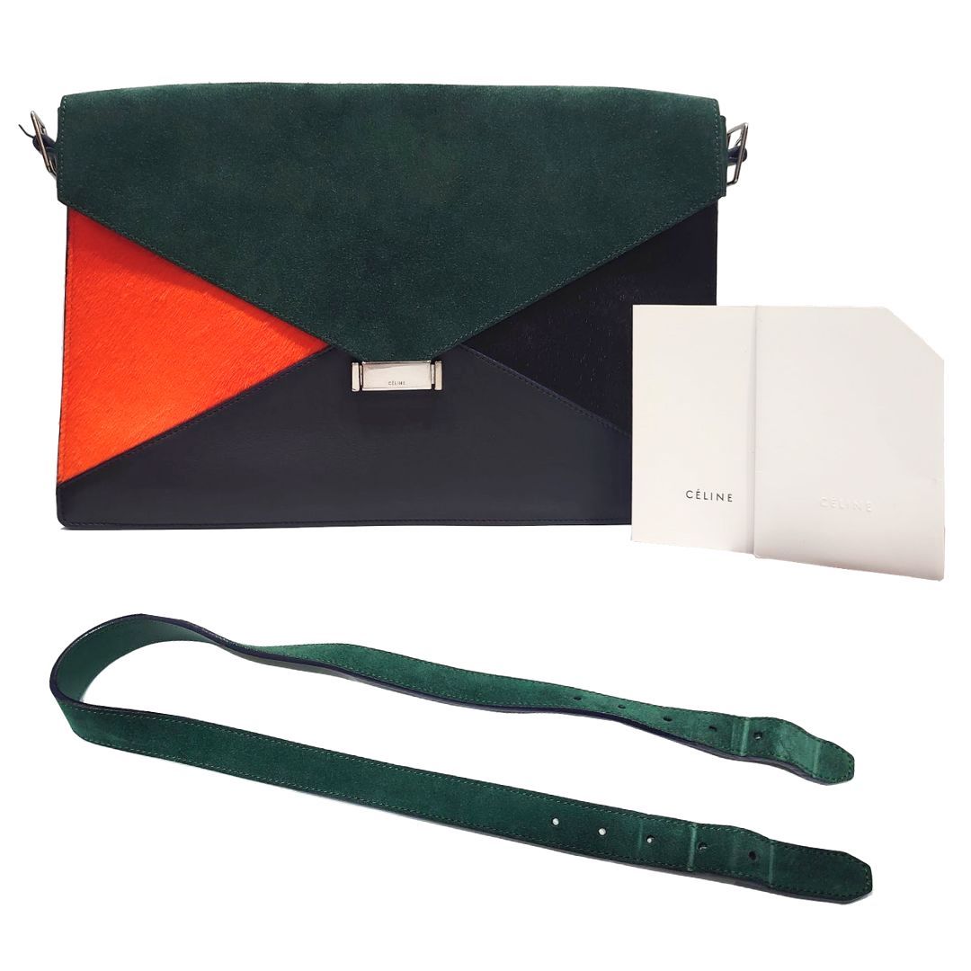 【レア】CELINE セリーヌ ショルダーバッグ クラッチバッグ スエード ハラコ レザー グリーン オレンジ ブラック 緑 黒 鑑定済 送料無料