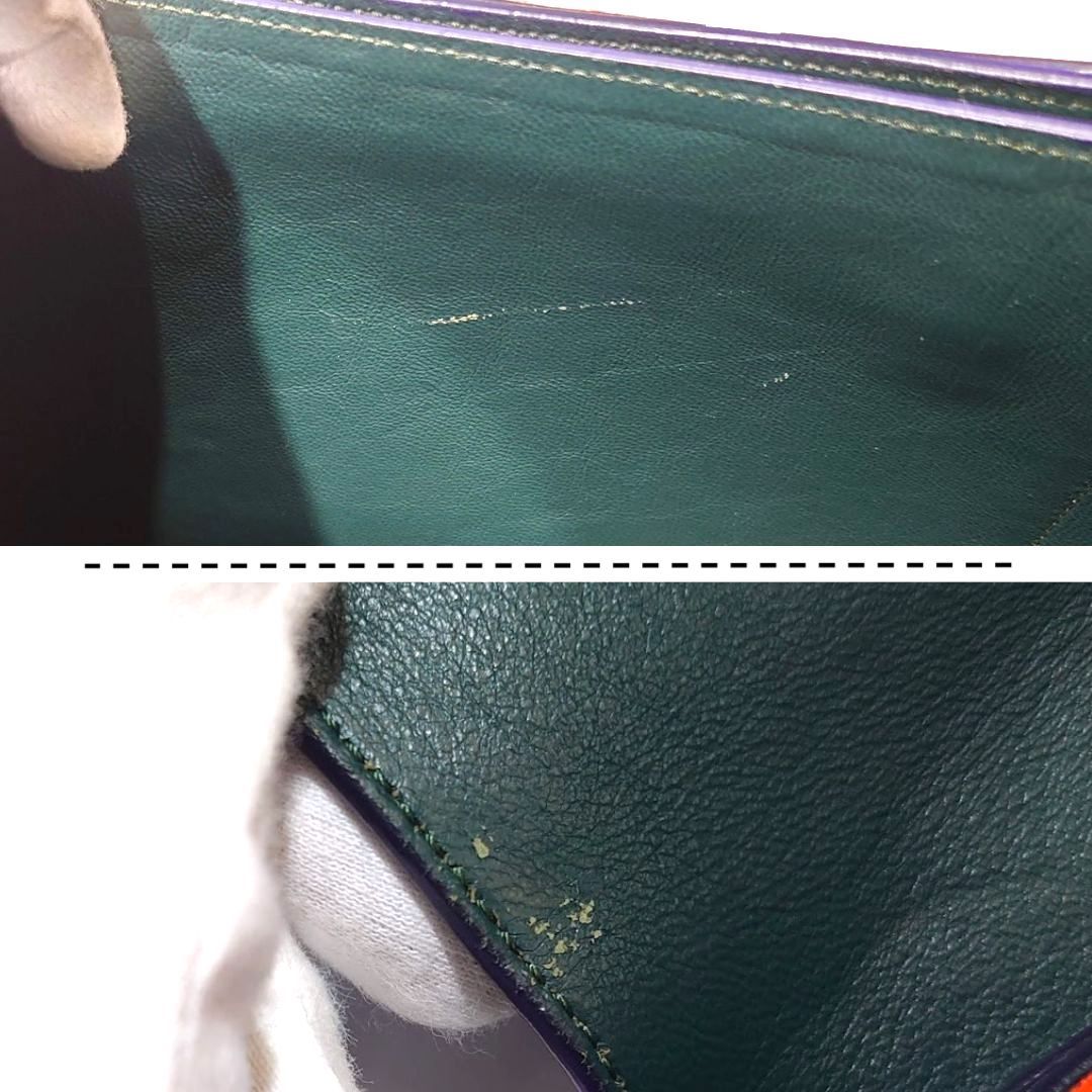 ・内側、2~3箇所に若干のキズがあります(写真10枚目参照)。レザーに金具の押し跡があります。ベタつきや汚れはありません。