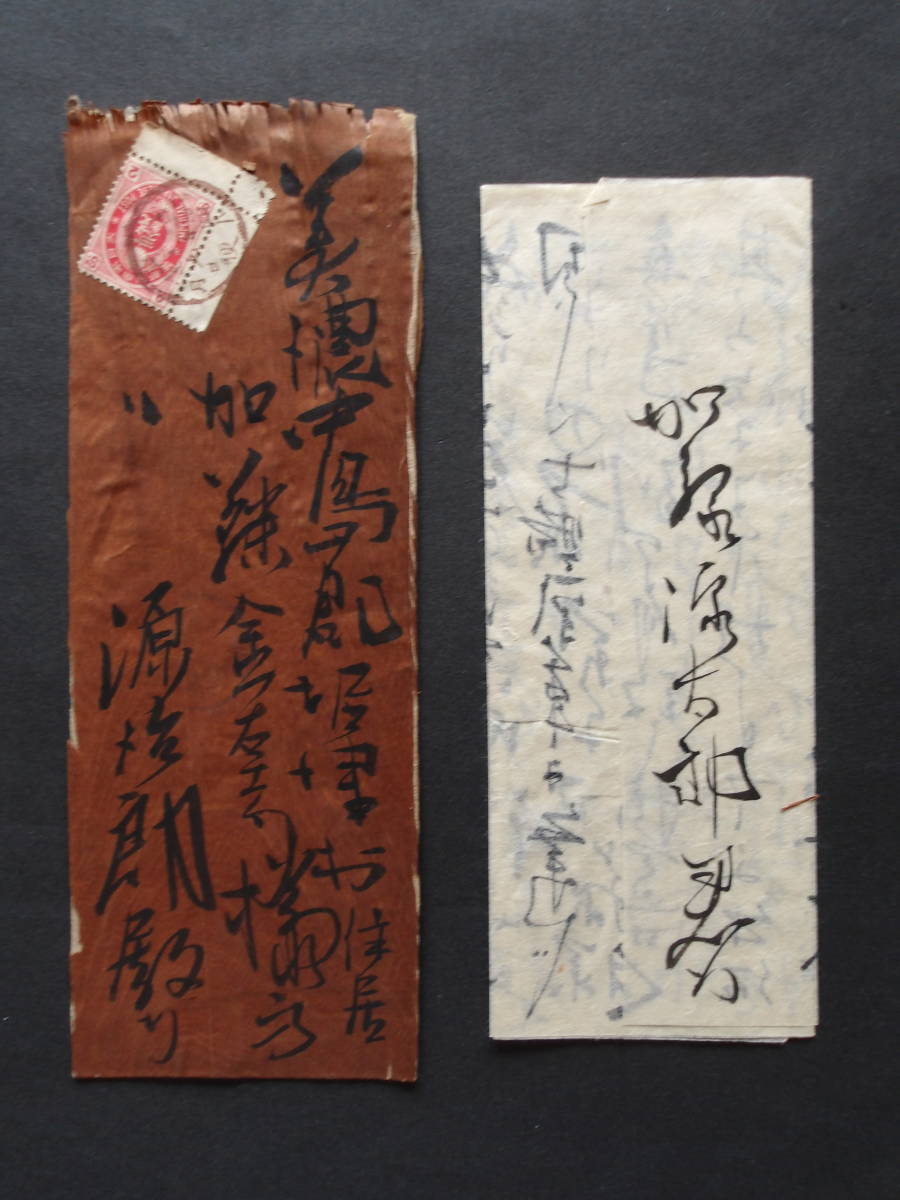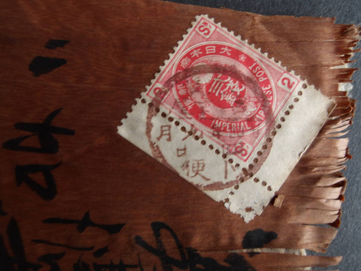 《新小判》 U小判 2銭《第三コーナー》 丸一印  尾張/名古屋   ※ 木を薄く削った封皮?