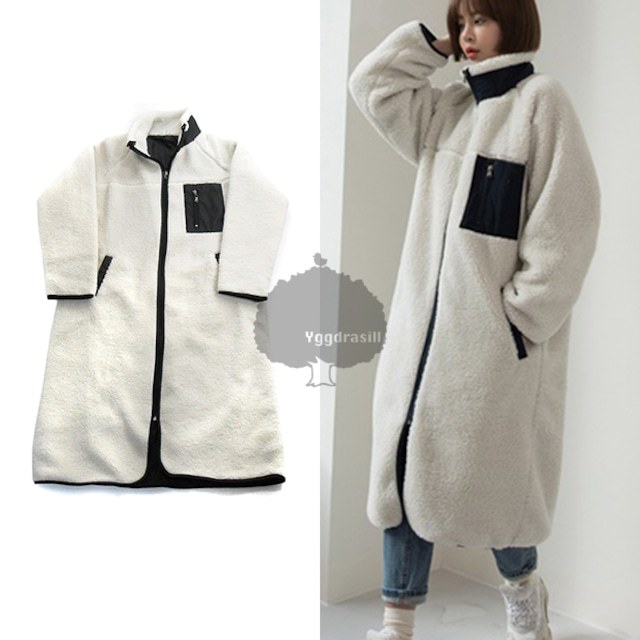 YGG★新品 ロング ボア コート ジャケット 白 ホワイト フリー FREE レディース 韓国ファッション ボア エコファー オルチャン 可愛い