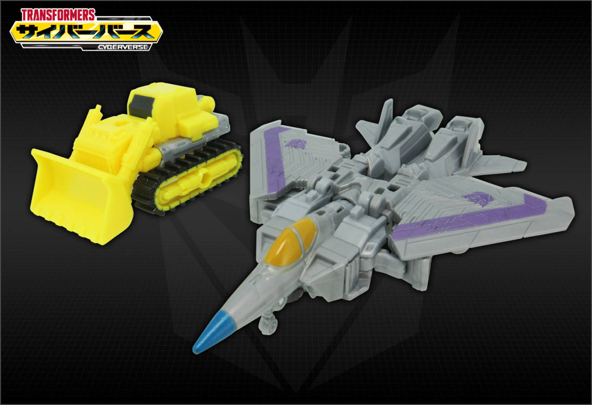 ジェット機からロボットにトランスフォームするスタースクリームにショベルカータイプのアーマービークルが合体パワーアップ。