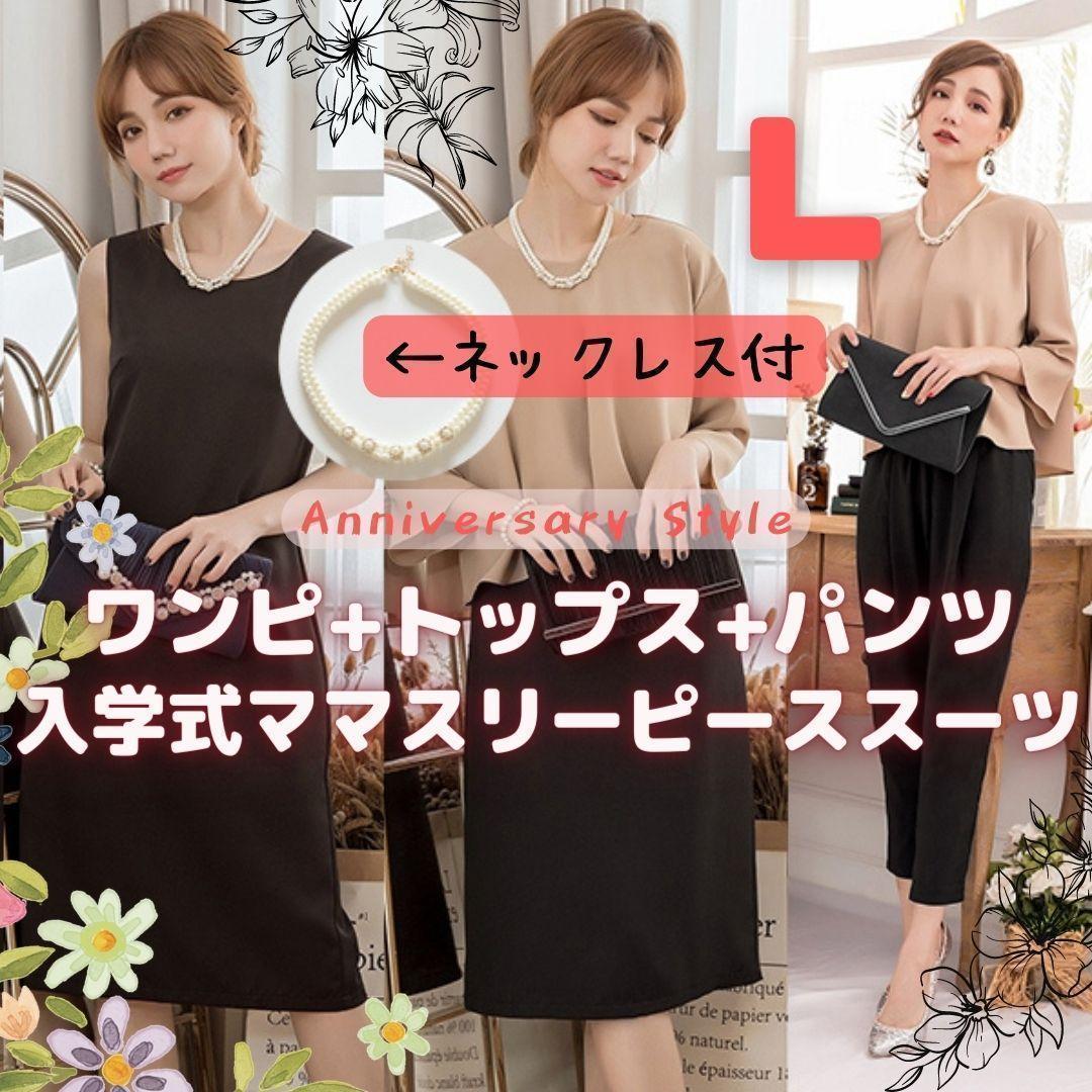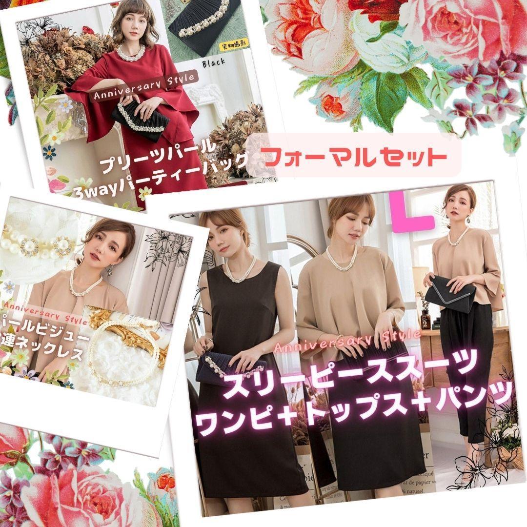 ネックレス バッグ 付 ベージュ L ワンピース パンツスーツ 81326 B55167 L0067 パーティー フォーマル 卒業式 入学式 結婚式 スリーピース