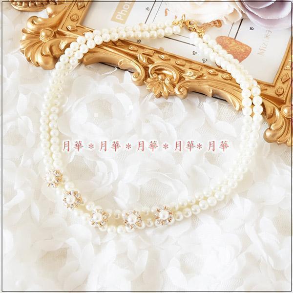 チョーカーのように首元にタイトにキマルフェイクパールの花ビジュー飾り付きネックレス。