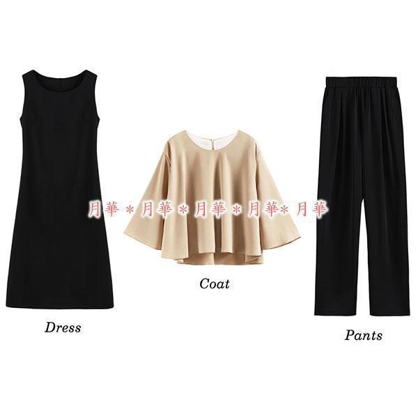 可愛さと大人っぽさの両立、ブラウス+パンツ+ワンピース3枚セット万能ドレス!ネックレス付。