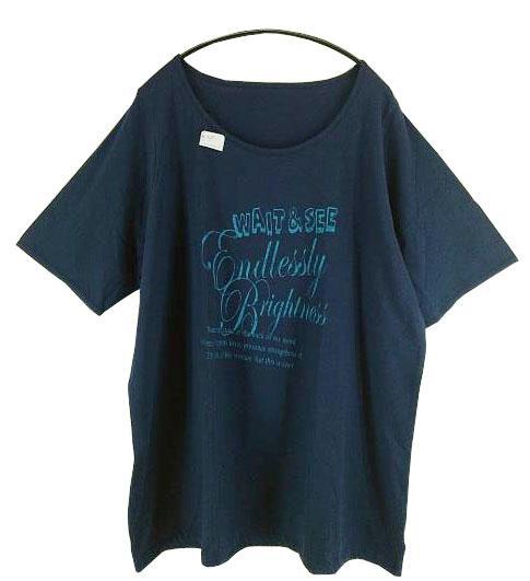 SS1266◇ 新品 バルーンプリント チュニック フロントプリント ジュエルネック 裾ゴム入り 七分袖 綿100% 5Lサイズ ネイビー 送料 510円