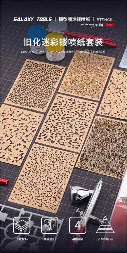 ◆◇GALAXY MODEL【L00009】エアブラシステンシル4(塩害表現 4種セット)(1/32・1/35)◇◆