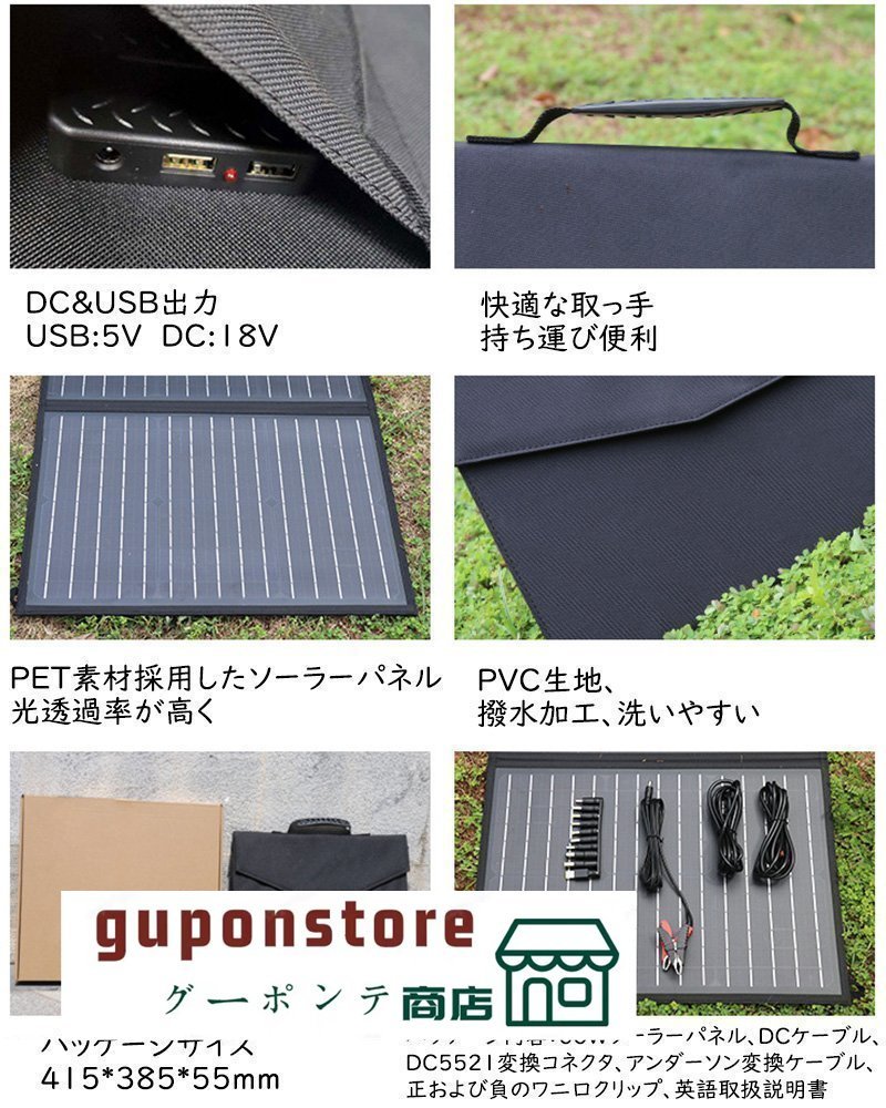 18V60Wソーラーパネル PET単結晶ソーラーチャージャー 折りたたみ太陽光パネル DC/USB出力 ポータブル電源 MC4高出力 高変換効率 薄型軽量
