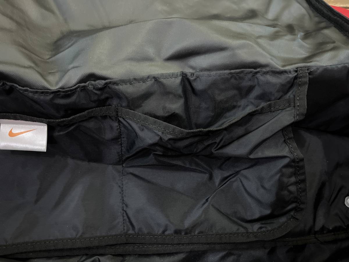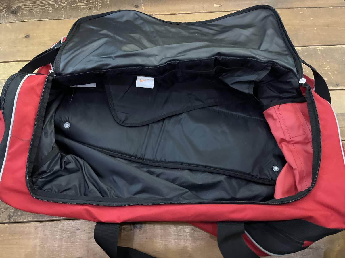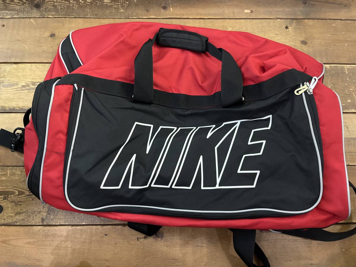 NIKE / ナイキ ボストンバック トラベルバック 肩掛け ブラック レッド 内ポケット付き ジップ ナイロン ロゴ刺繍 USED