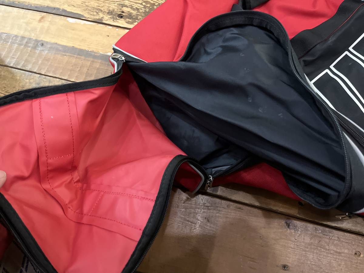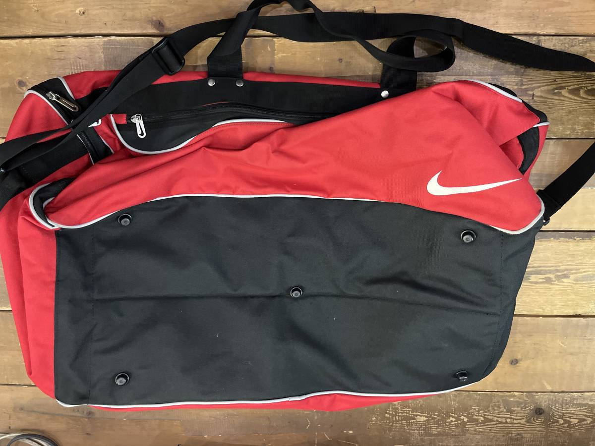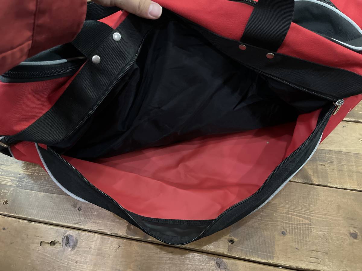 NIKE / ナイキ ボストンバック トラベルバック 肩掛け ブラック レッド 内ポケット付き ジップ ナイロン ロゴ刺繍 USED