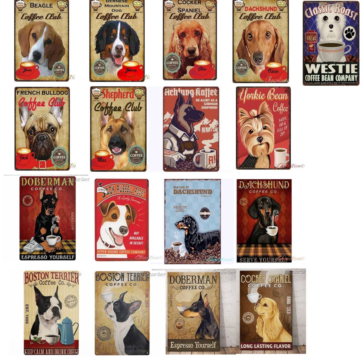 【送料無料】ジャックラッセル ② coffee メタルサインプレート メタル看板【新品】
