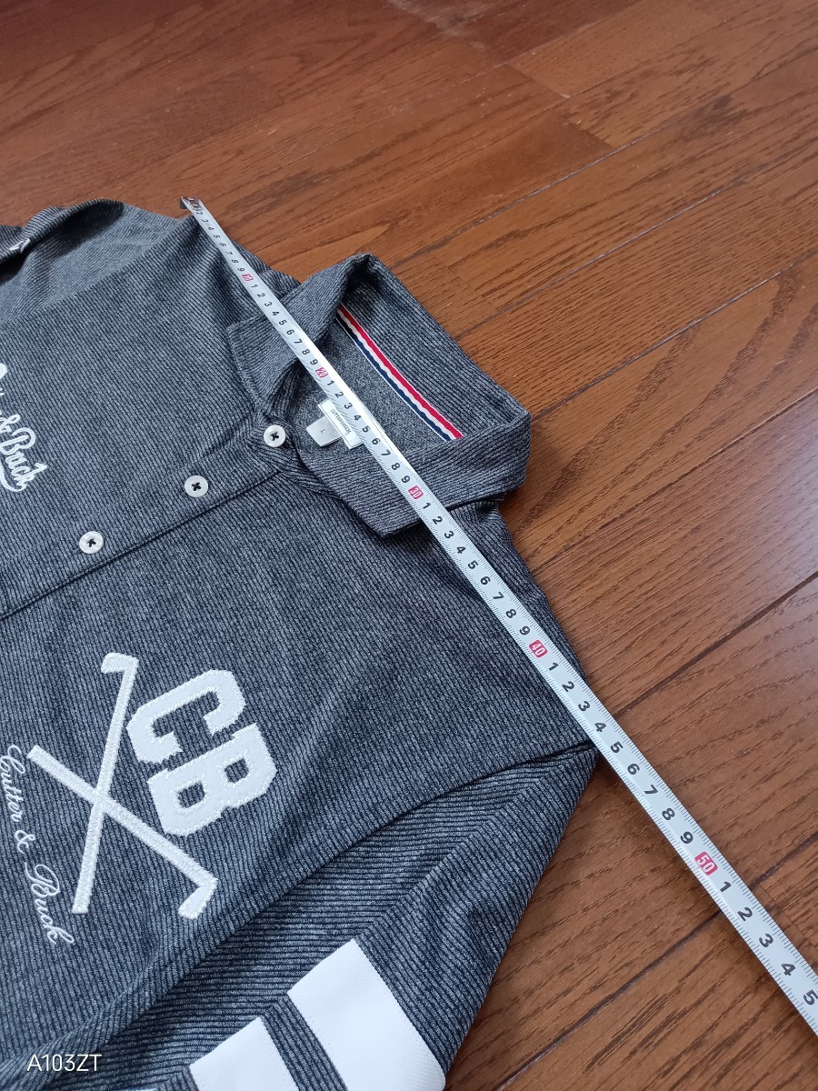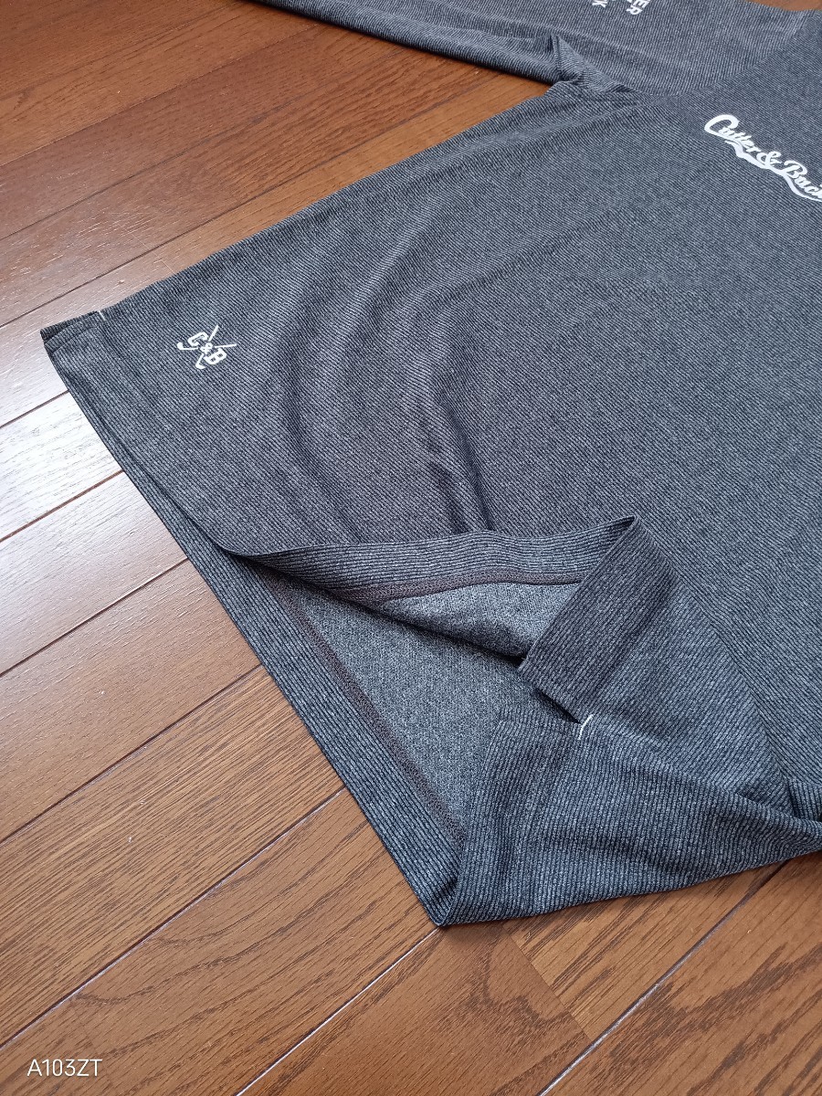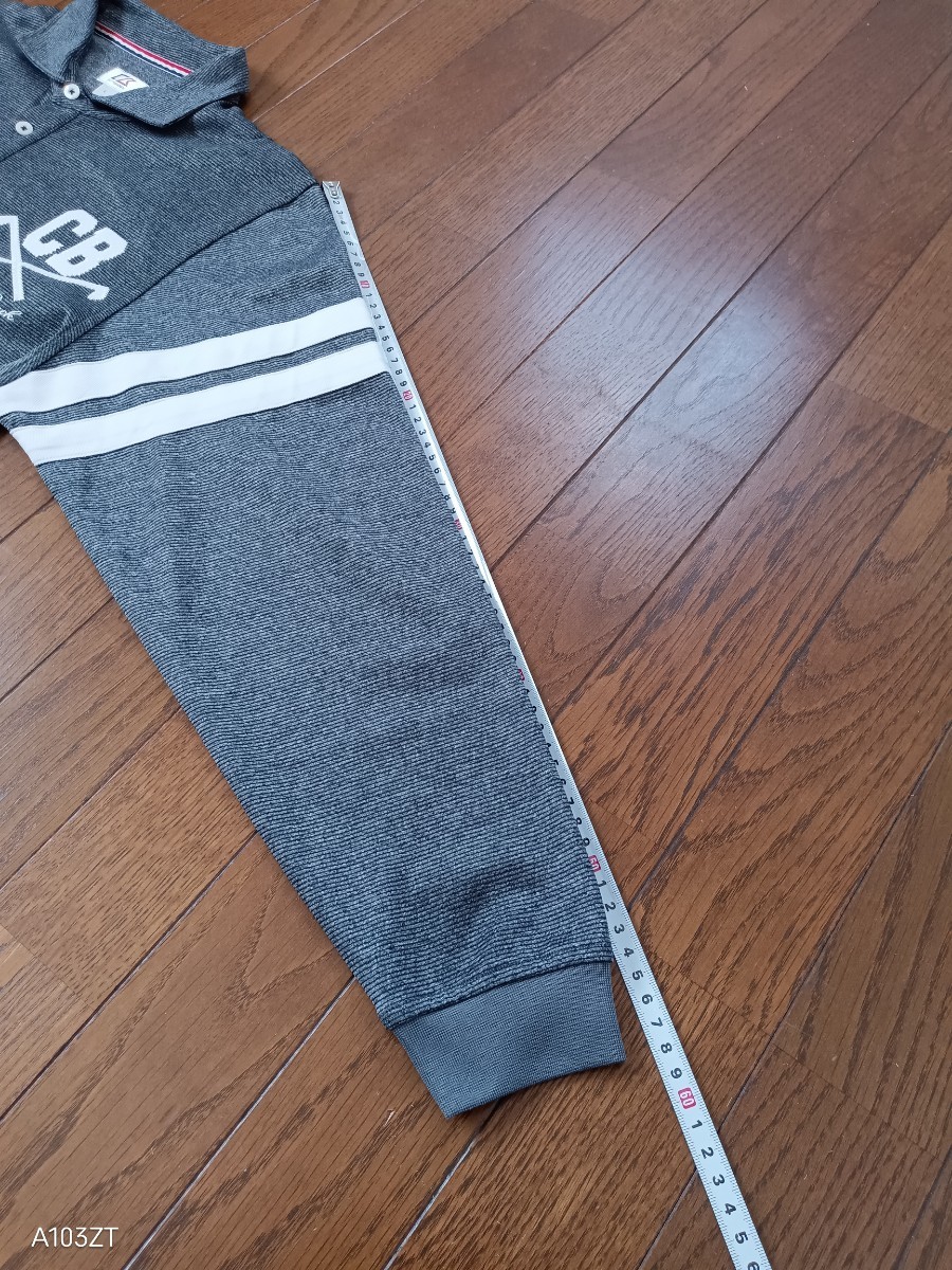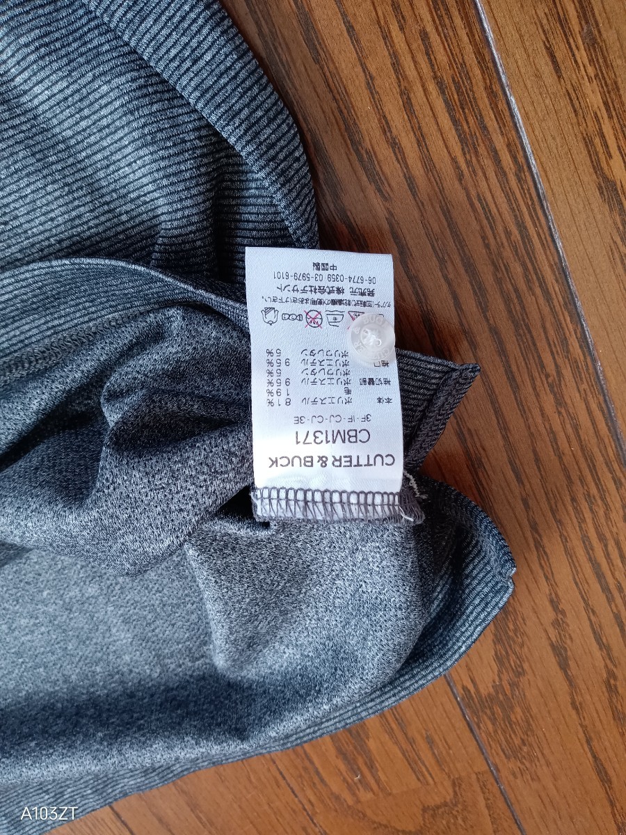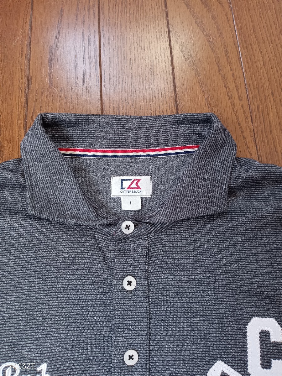 1063【中古品】CUTTER & BUCK カッター&バック ゴルフウェア 長袖ポロシャツ ダークグレー ロゴマークワッペン刺繍入 ウール19% メンズサイズL
