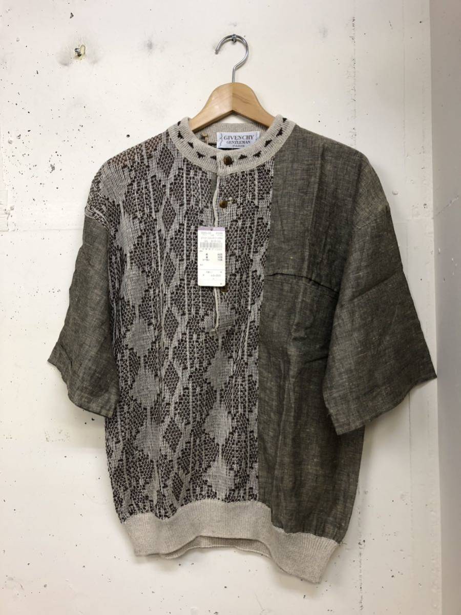 新品 〜90s GIVENCHY GENTLEMAN PARIS イタリア製 リネン ニット シャツ 切り替え 半袖トップス 46 ビンテージ ジバンシィ になります。