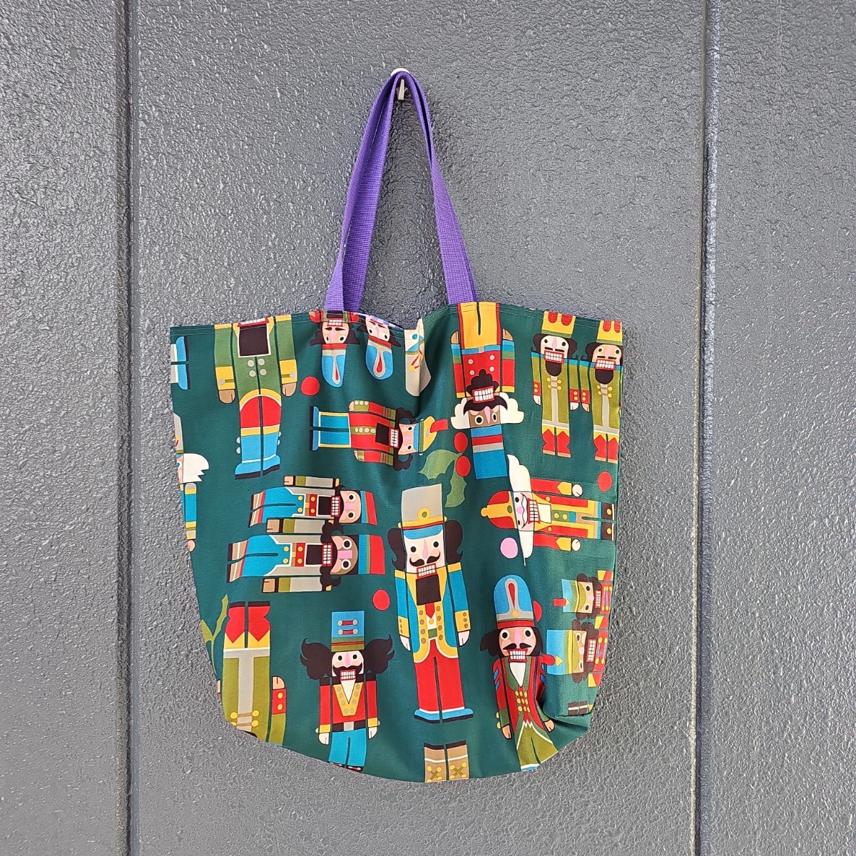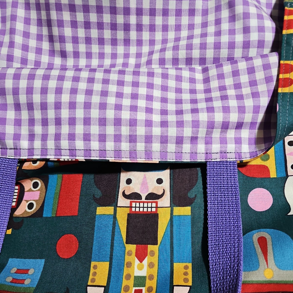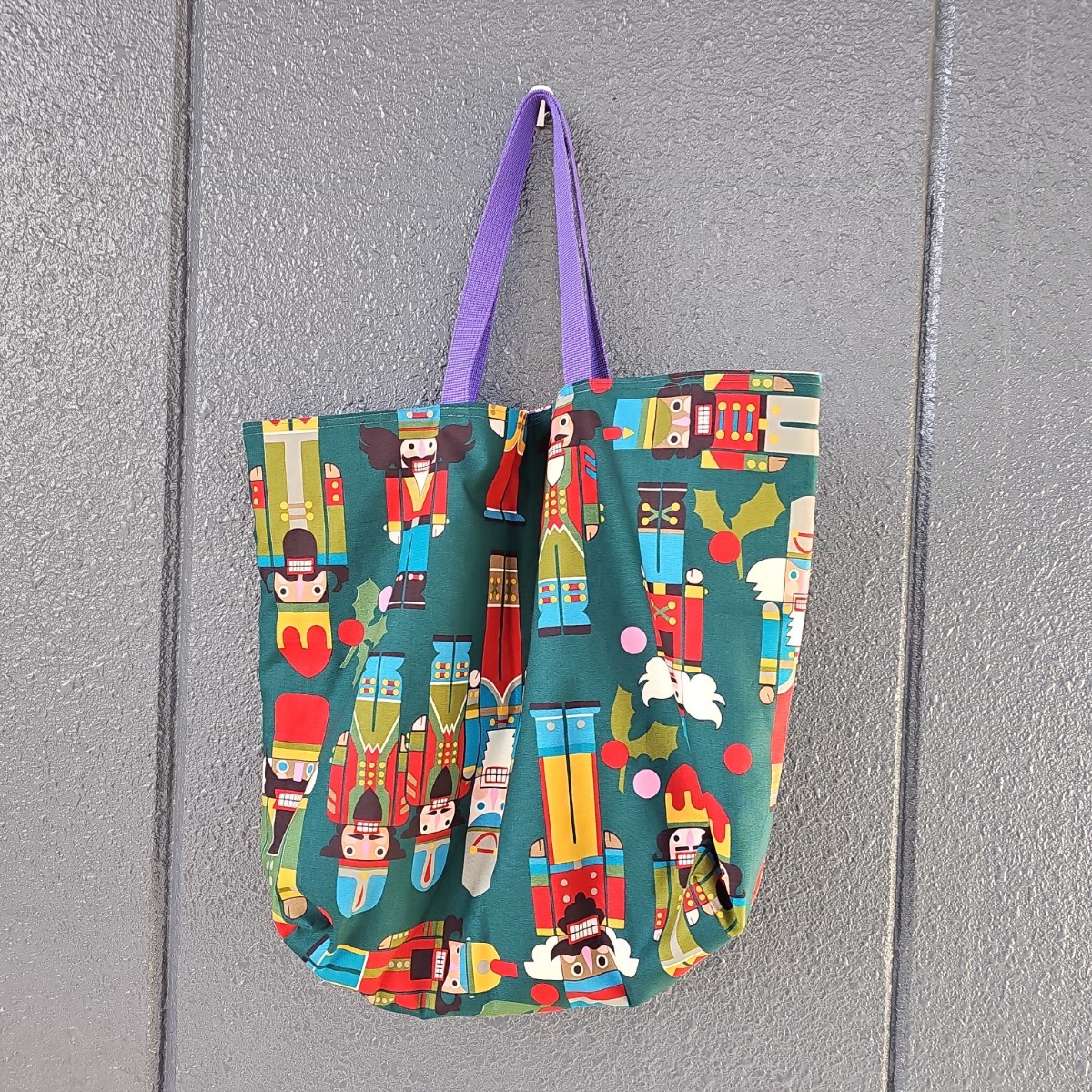 サイズは、高さ40cm、横 上部54cm、底部38cm、マチ15cm、ヒモ49cmです。