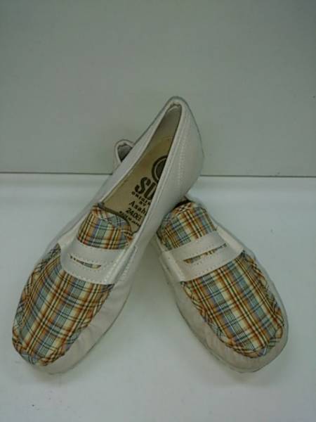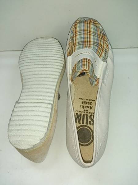 コメント fc | 「SUN」 YOUNG の’60~’70年代生産のデッドストックのキャンバスMOCCASINになります。 アッパーのマドラスチェック+ホワイト色のカラ-リングはとてもキレイです EEワイズで足入れはわりと良いです デザイン・フォルムは60~70年代のものですがキレイです アッパー、中敷他にかなりの汚れ・シミ・変色があります 「ヤング」という言葉が懐かしい 日本生産 |