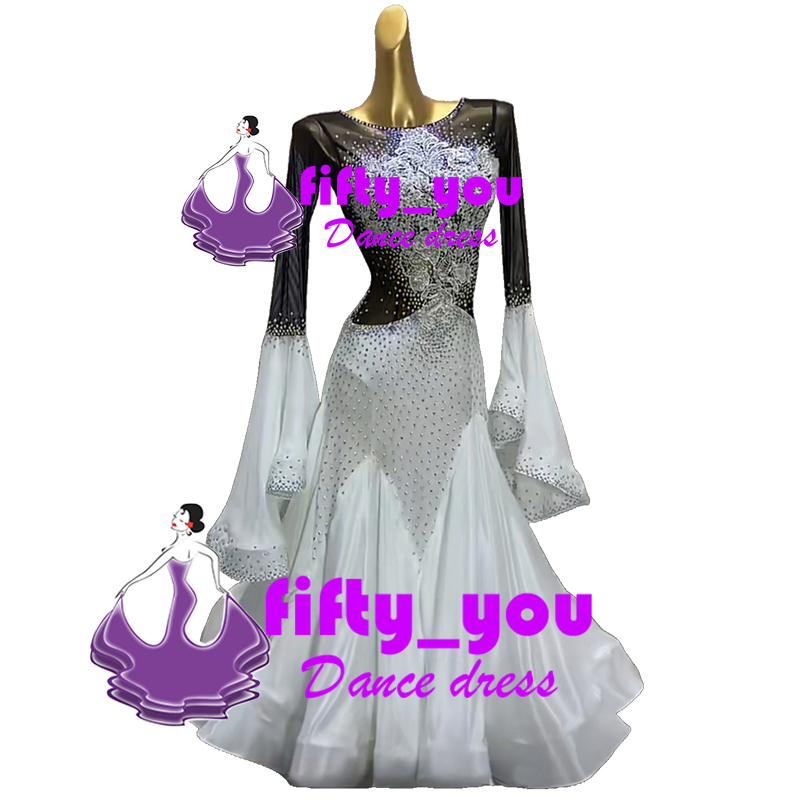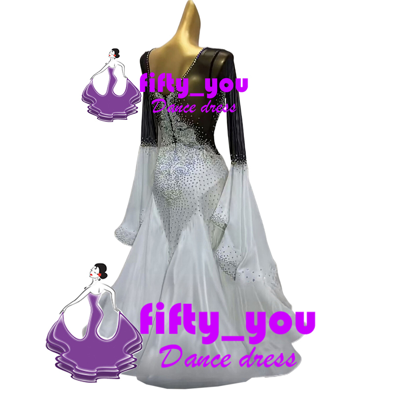 新品fifty_you レディース社交ダンスドレス  モダン競技パーティードレス ワルツドレス サイズオーダー ライトストーンいっぱい飾り