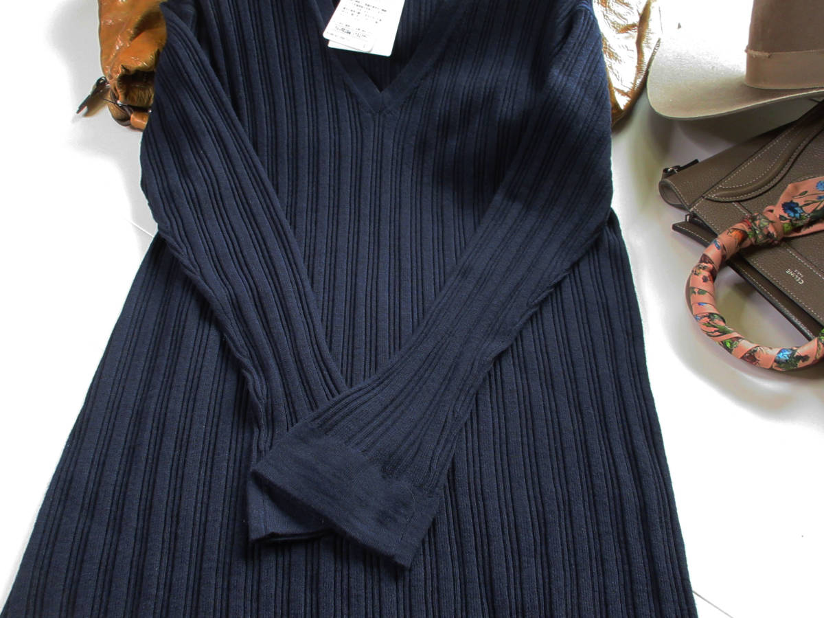 *:.*:.。...:*・ ◆新品 Plage/プラージュ【ピュアウール100ニットワンピース】ネイビー◆¥22,000-