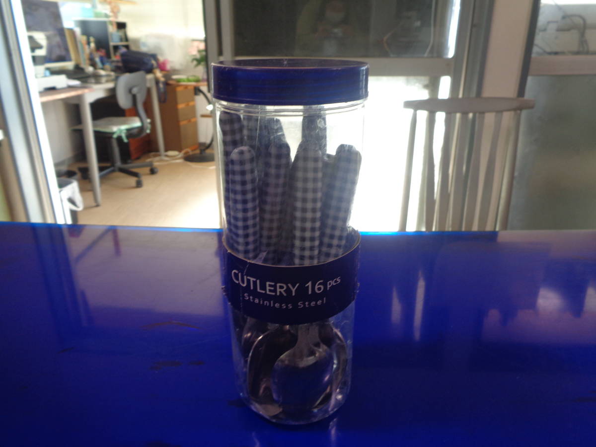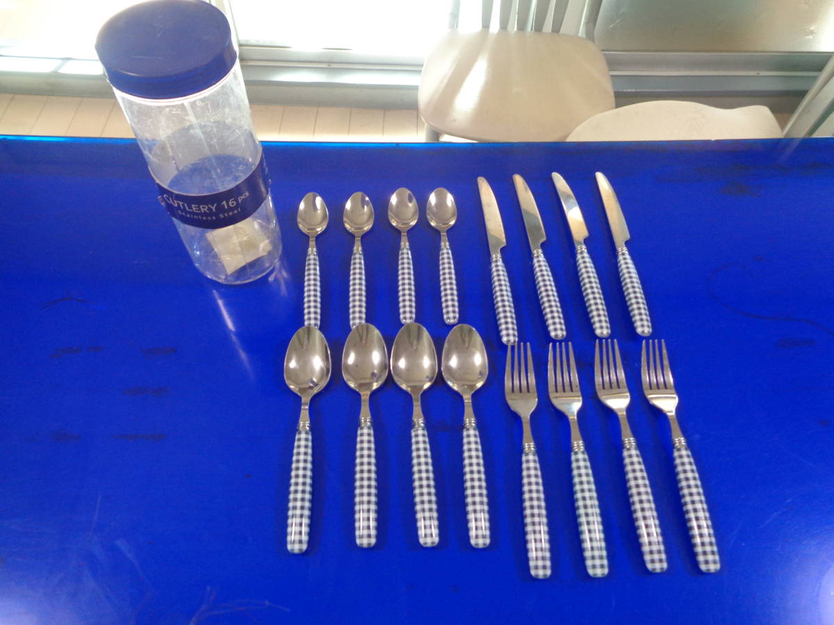 チェック柄(紺・白)のカトラリー16P!(中古)