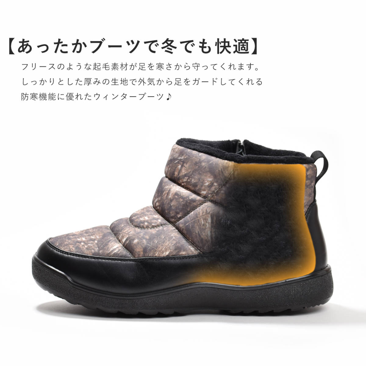 しっかりと厚みのある生地が足を包み込み、さらに内側のふかふか素材が熱を逃がさない。