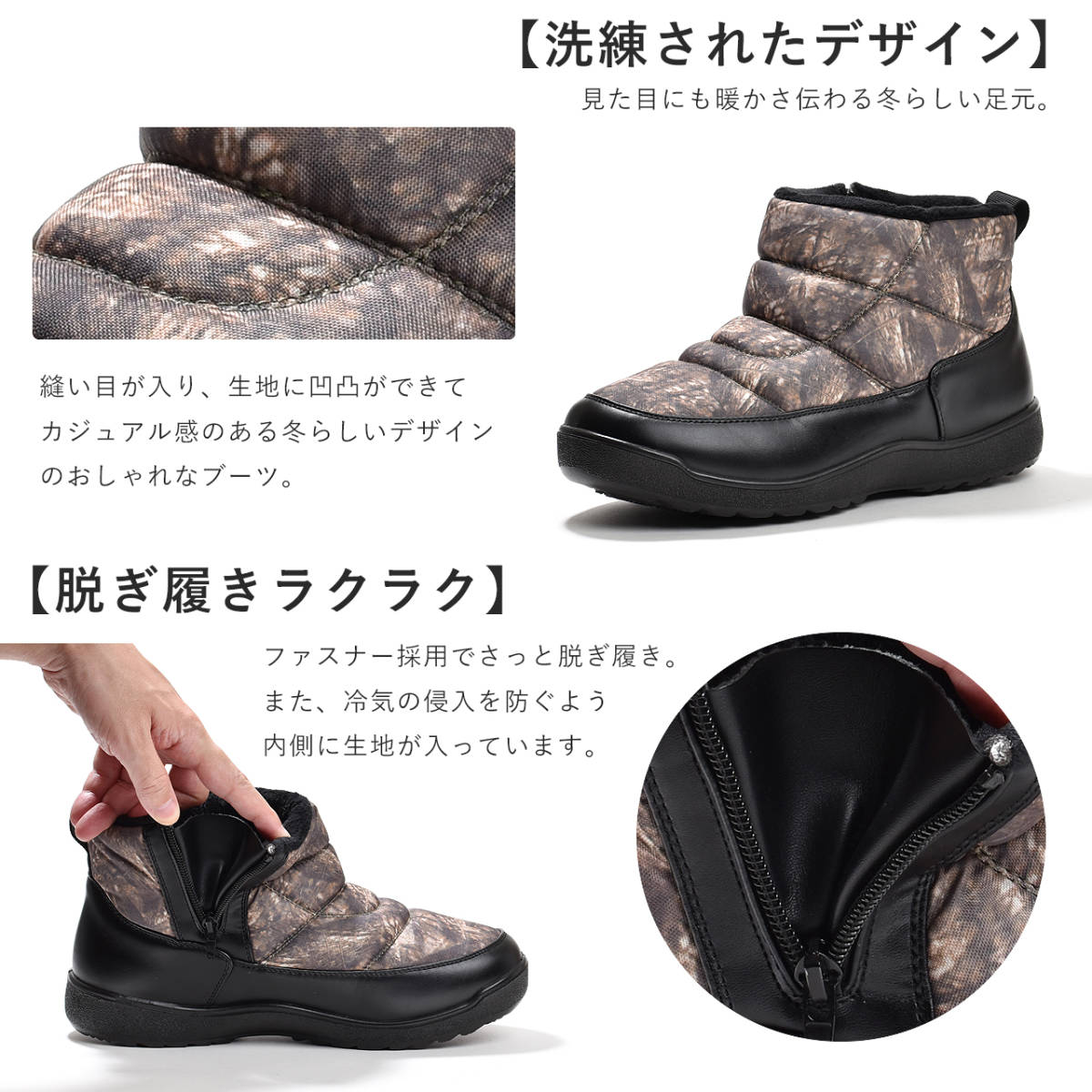冬らしい足元で、冬のコーディネートにおすすめ、スノーブーツ。