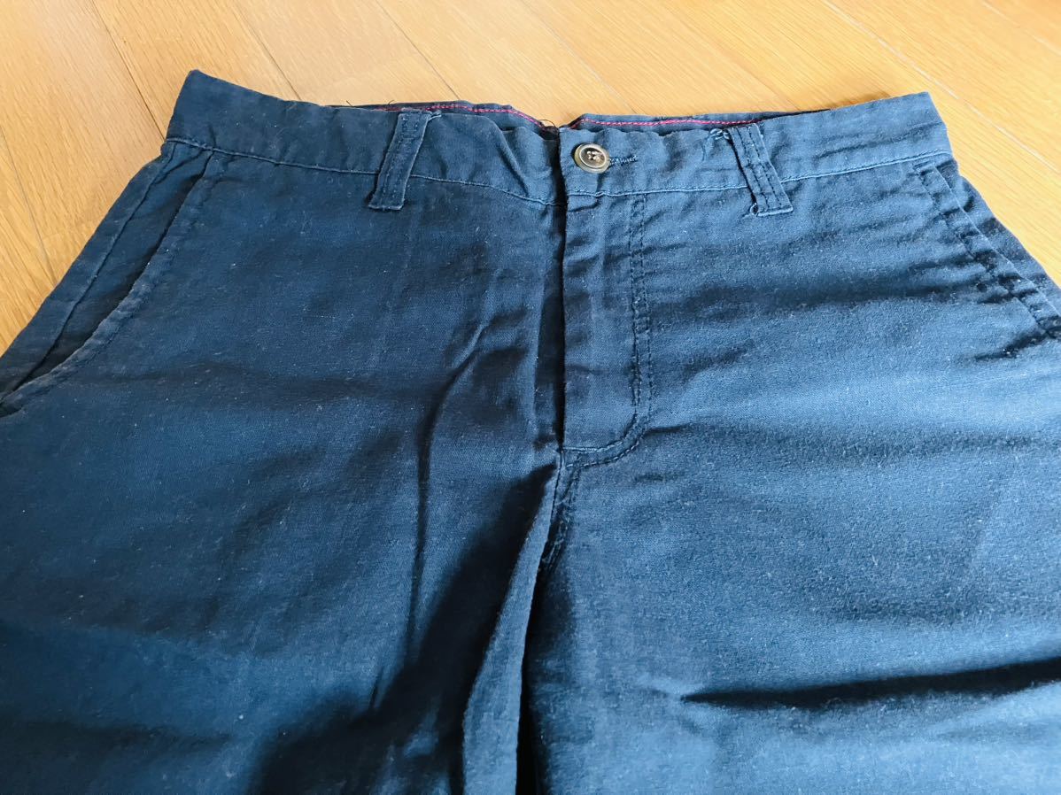 ★送料無料!★コットンと麻の素朴なハーフパンツ★シンプル★フェス★キャンプ★ネイビー★青