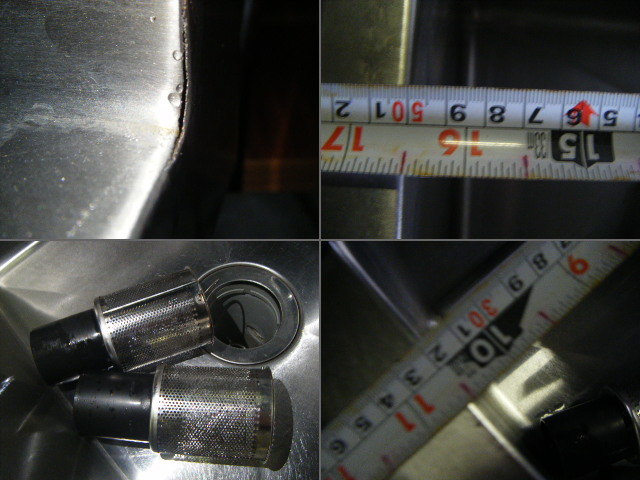 | 商品説明 | ご覧頂き有難うございます。今回は ステンレス2槽シンク・左台付き・バックガード 1700×450×940/980(mm) です。 移転に伴い外したものです。 中古品ですので使用傷・錆・汚れ・ダメージはあります、できる限り掃除済みです。 小さい店舗の方は使い勝手がいいと思います。 2槽シンクに作業スペース付きです。槽は 幅50cm 奥行き 32cm シンクのアジャスター 94cm~98cm 調整可能です。 全て手で回ります。 右角に亀裂あります、使用に問題なと思います。 らくらく家財 Eランク です。 東京まで 350cmまで18,130円 です。 |