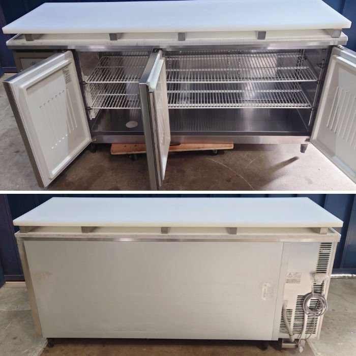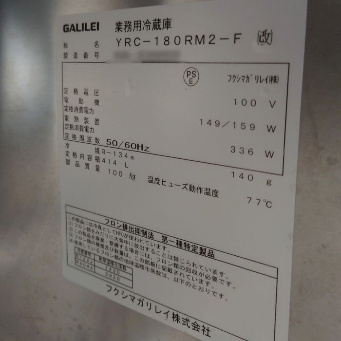<仕様> 商 品 名 :業務用冷蔵庫 メーカー:フクシマガリレイ 型 番:YRC-180RM2-F(改) 年 式:2020年 寸 法:約 幅 1800mm × 奥行 600mm × 高さ 800mm 重 量:約 100 kg 電 源:100V 50/60Hz 付 属 品 :SUS角材 □40x580…5本 :まな板 1800mmx600mmx30mm…1枚 <動作確認> ・設定温度-6℃にて、-6まで下がる事を確認しました。 ・当社は専門店では無い為、メンテナンス等はできかねます。 <状態> ・簡易清掃済 ・経年劣化により、落としきれない汚れ、錆がございます。 ・まな板、落としきれない汚れ、キズがございます。 ・撮影時の光の加減などにより、実物より色のイメージが異なる場合がございます。 ・棚受けが3個不足しております。 |