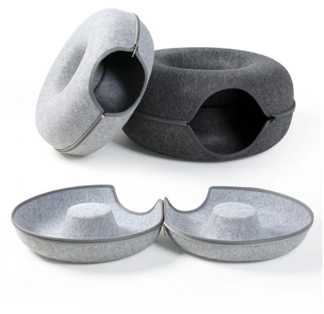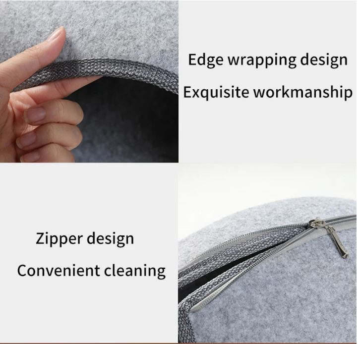 1.フェルト素材: キャットトンネルベッドは、耐摩耗性、引っかき傷に強い厳選されたフェルト素材で作られています。