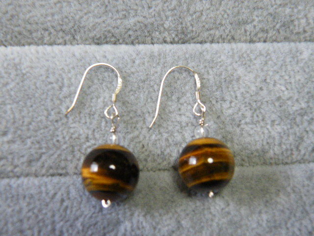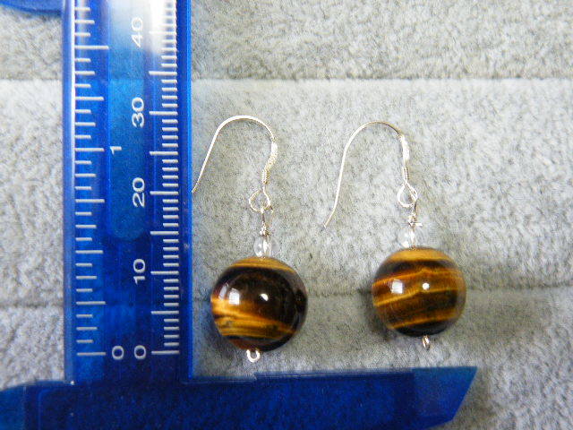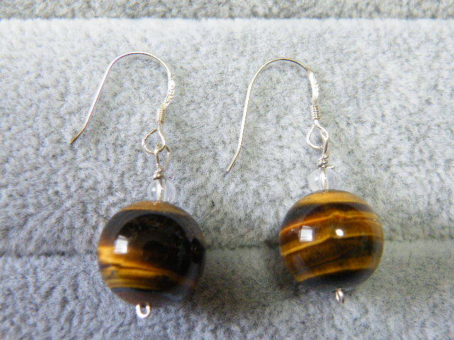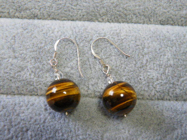 95014. キャッツアイタイガーアイ カラーストン ビーズ シルバー925 ピアス 未使用