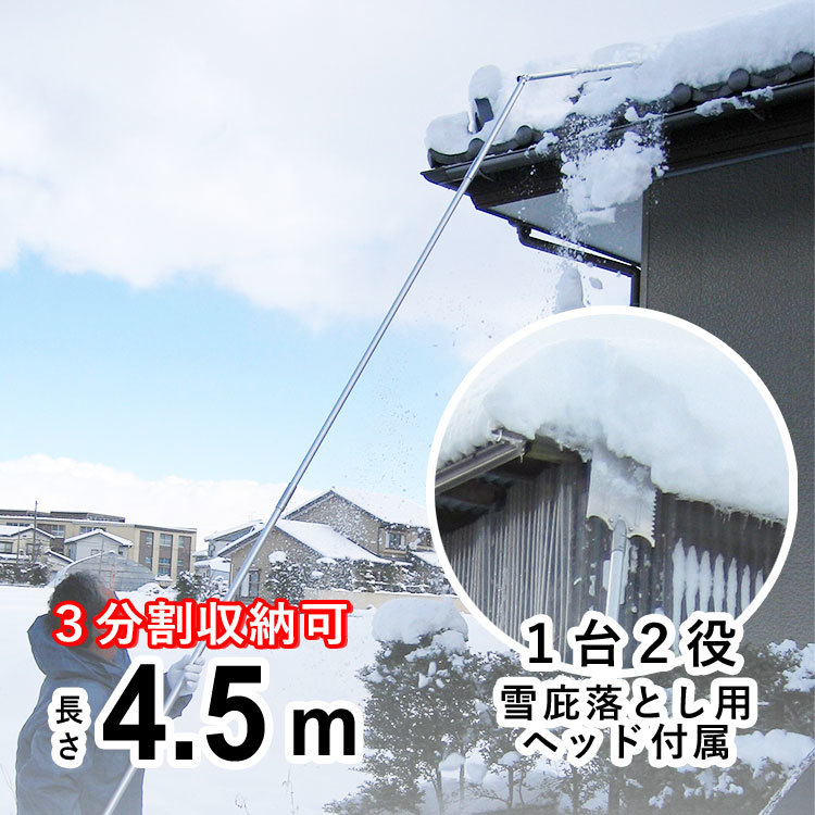 屋根の雪や、事故の元になるよう危険なつららも、これ一本で素早く安全に対処できます。
