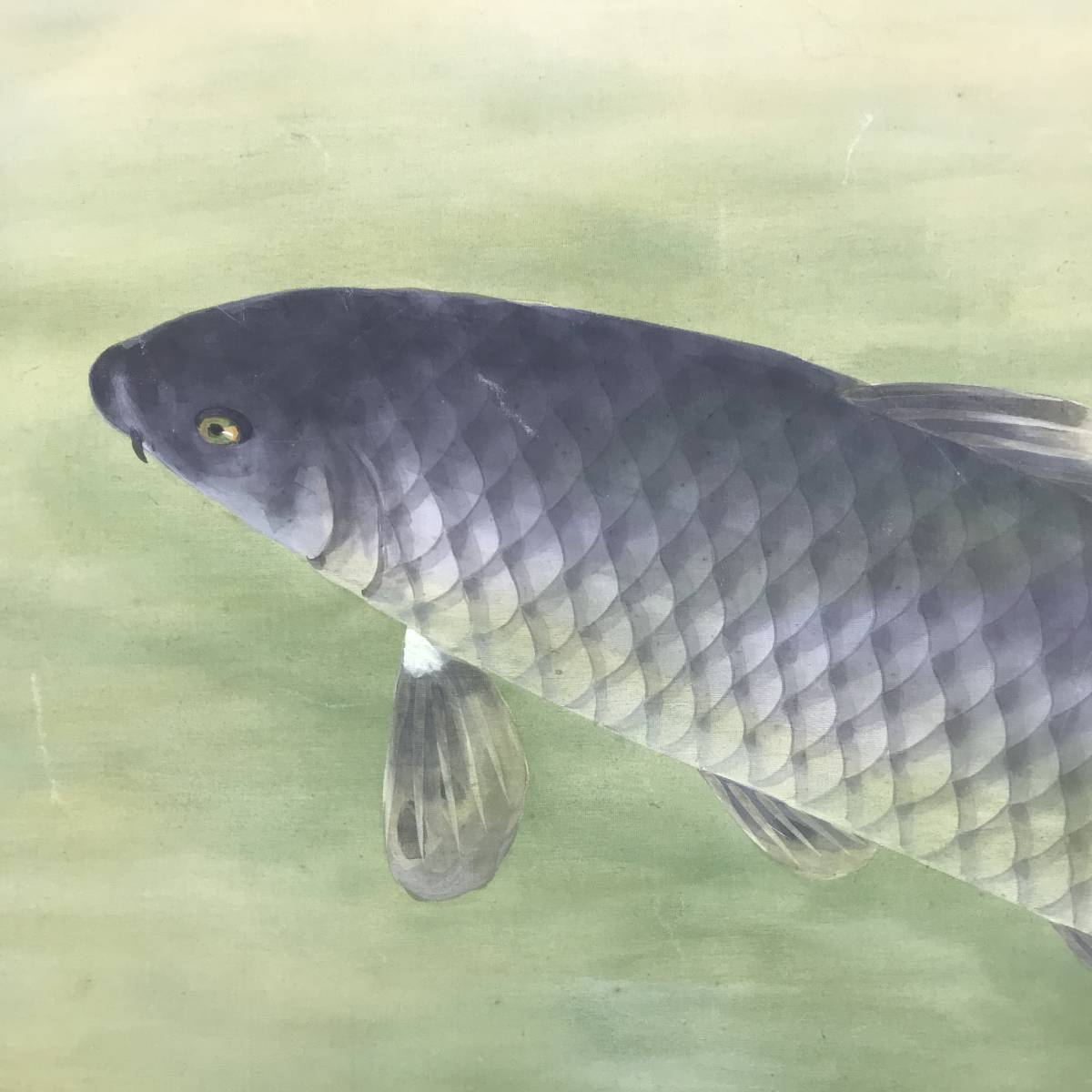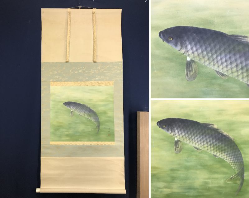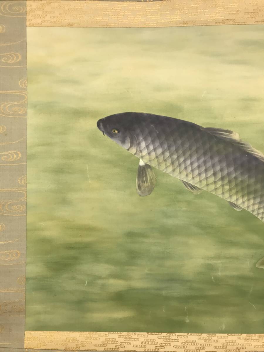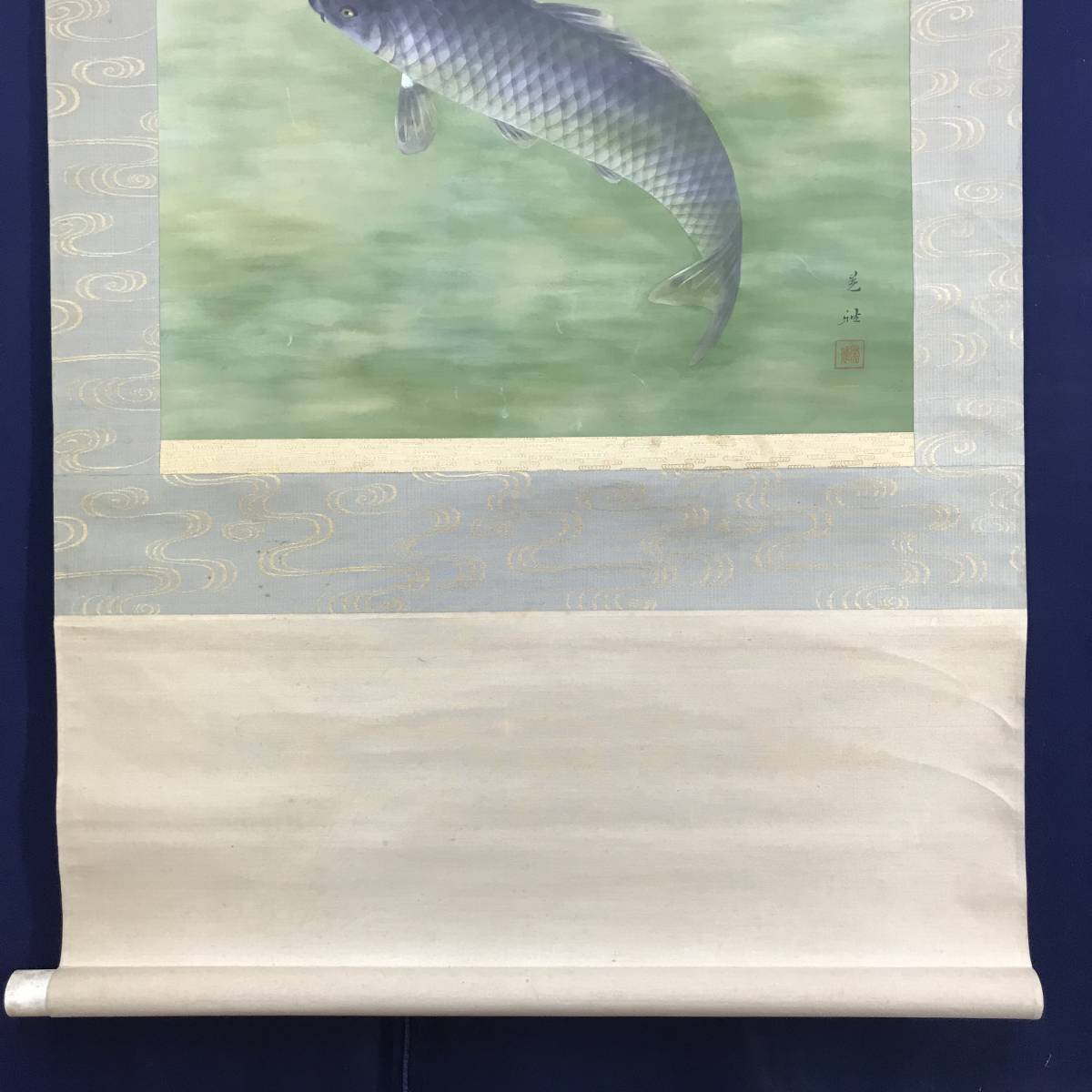 真作/羽田晃雅/鯉図/游鯉図/遊鯉図/コイ図//掛軸☆宝船☆AD-905