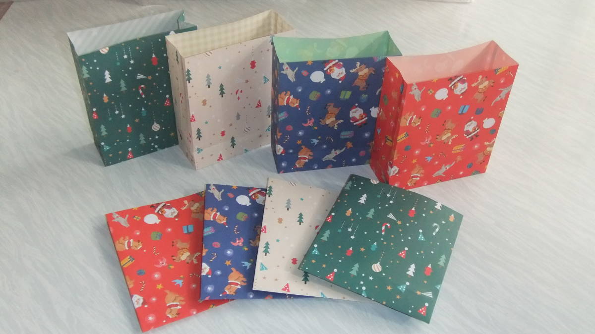 デザインペーパー(折り紙)でマチ付ラッピング袋を作りました♪