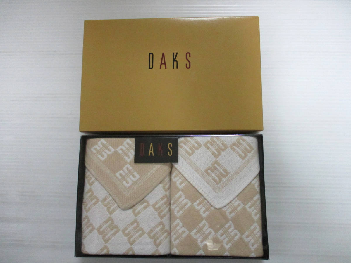 未使用☆DAKS ダックス タオル ハンカチ ? 2枚セット です。箱にスレ、軽い傷み凹みがあります。その点ご理解ください。