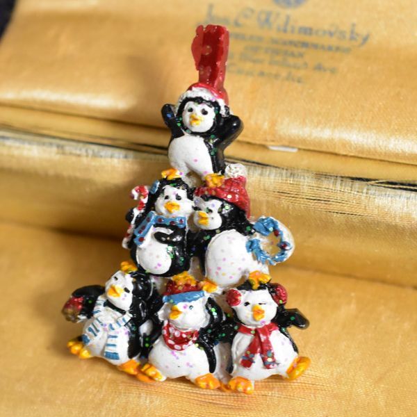 ヴィンテージ、ペンギンのクリスマスツリーのブローチです。