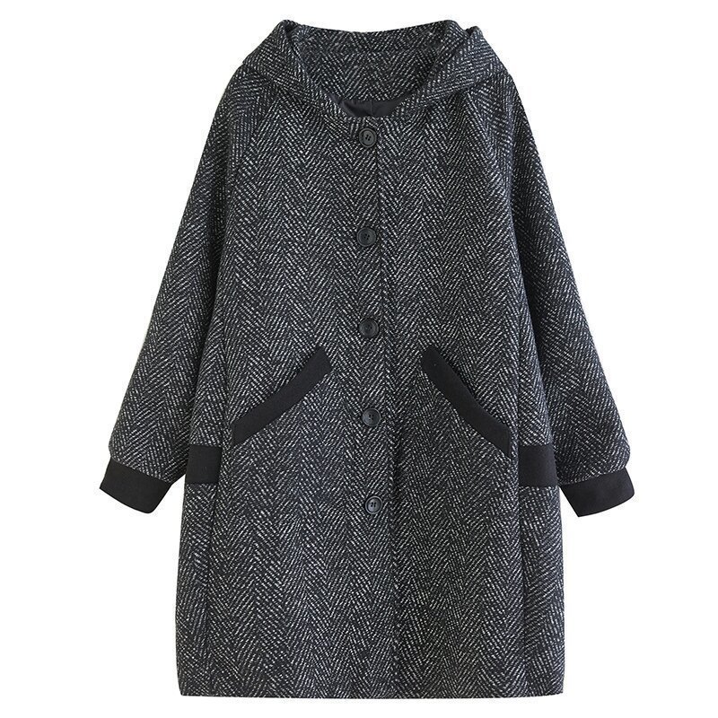 秋冬新品 上品 カジュアル ゆったり 大きいサイズ 304050代 フード付きロングコート レディース★Lサイズ