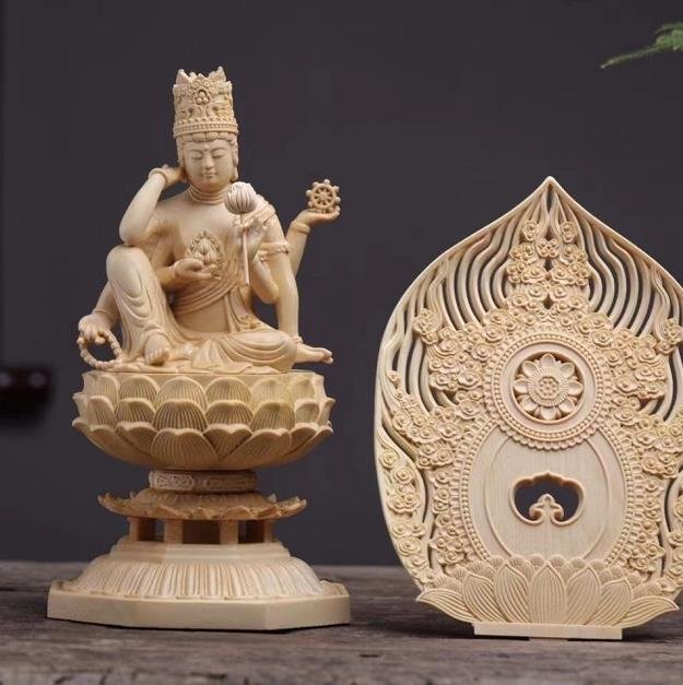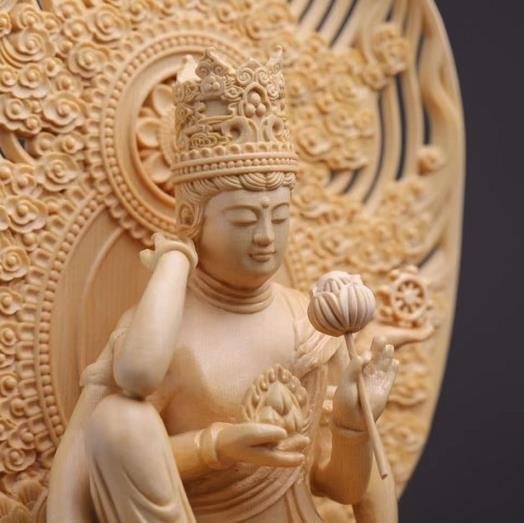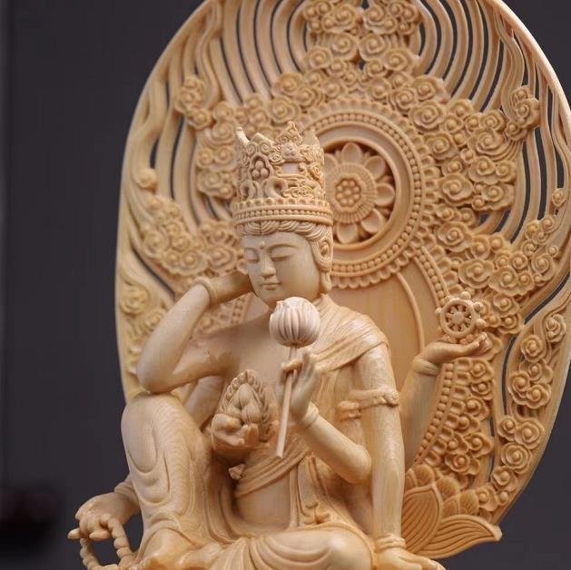 極上品★最新作 木彫 如意輪観音像 檜木 高約30cm