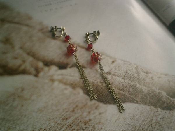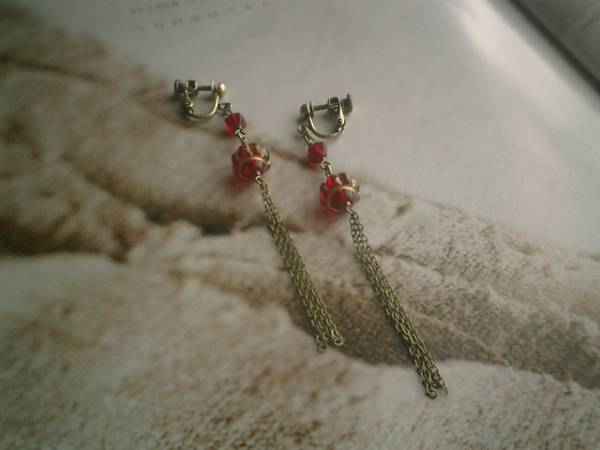シック・フレンチの定義・・シリーズです♪オリエンタルな赤・・深い赤のイヤリングです♪ペア1組です♪ベネチアビーズやチェコビーズなど個性的な素材を集めて神秘的な表情です♪チェコビーズは6ミリ位のスクエア、ベネチアビーズは10ミリ位です♪長さはチェーンを入れて9センチ位です♪ピアスにも変更出来ます♪♪お揃いのネックレスやブレスレットも出品しています♪♪シンプルで飽きのこないいつまでも着けられるデザインを考えて作りました!ハンドメイドをご理解頂いてノークレーム、ノーリターンでお願いします
