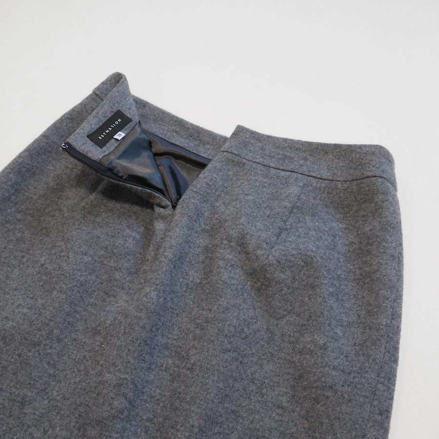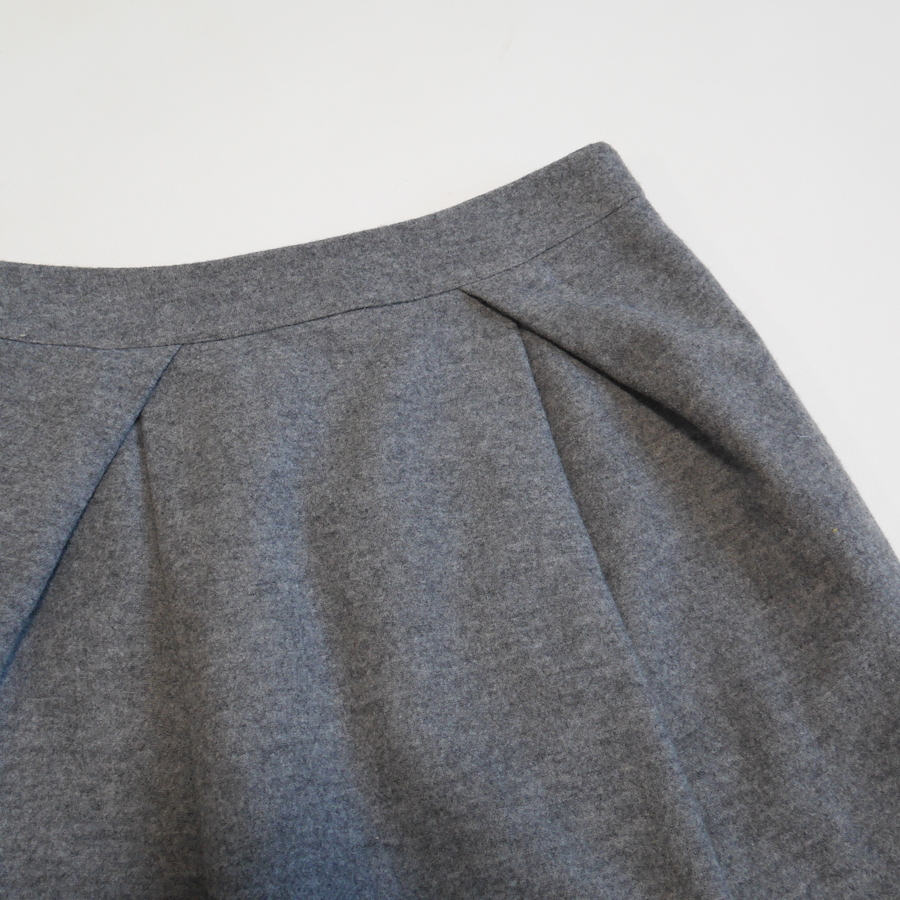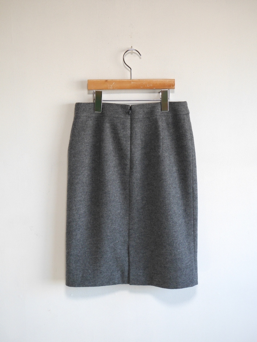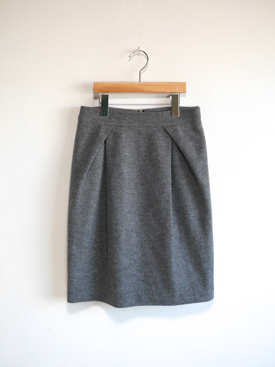タックの入った膝丈のウールスカート。 ほどよくタイトなシルエットで流行り廃りがなく、末長くお使いいただけます。