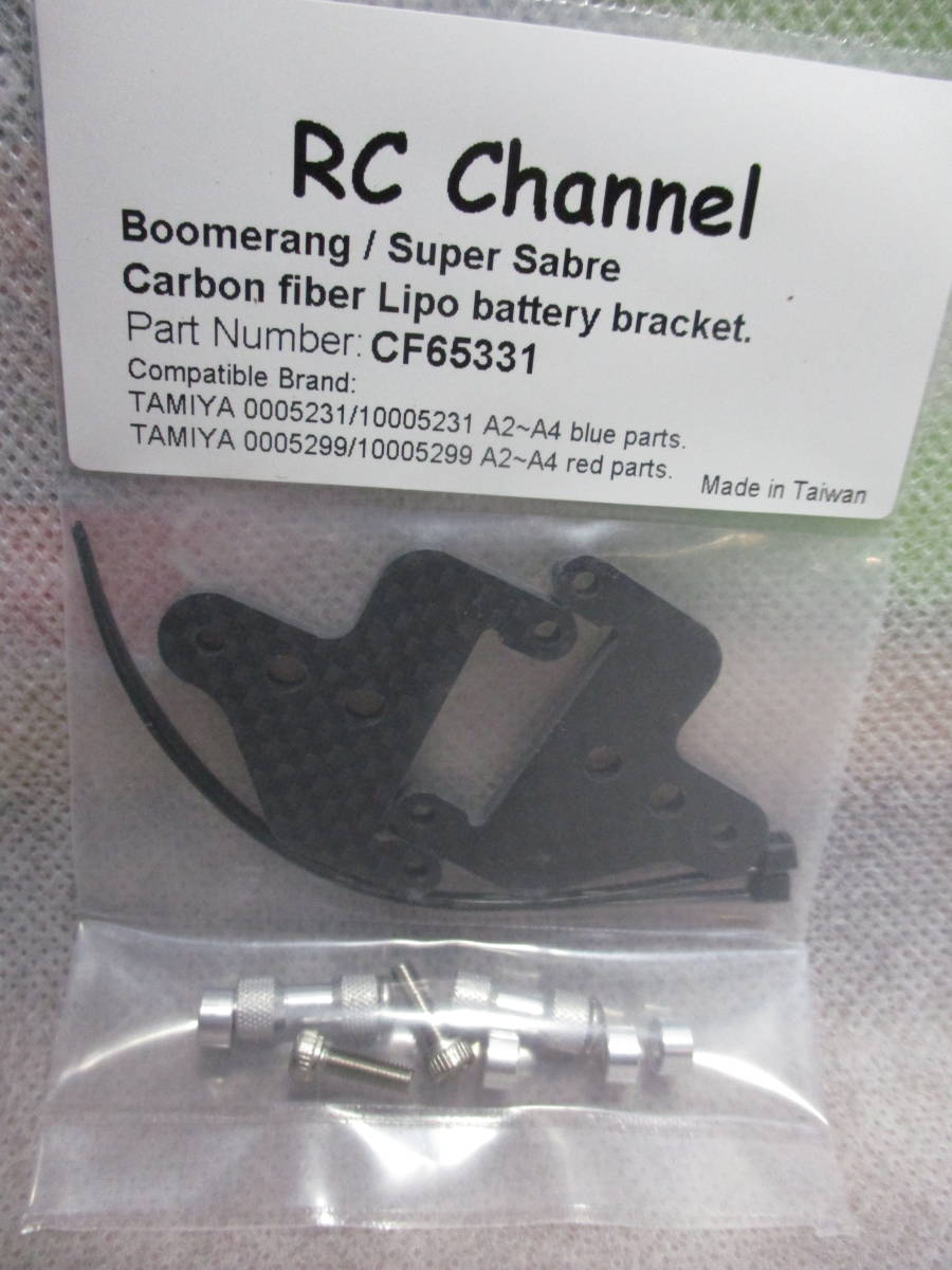 未使用未開封品 RC Channel CF65331 タミヤ ブーメラン / Super Sabre カーボン リポバッテリーブラケット、になります。