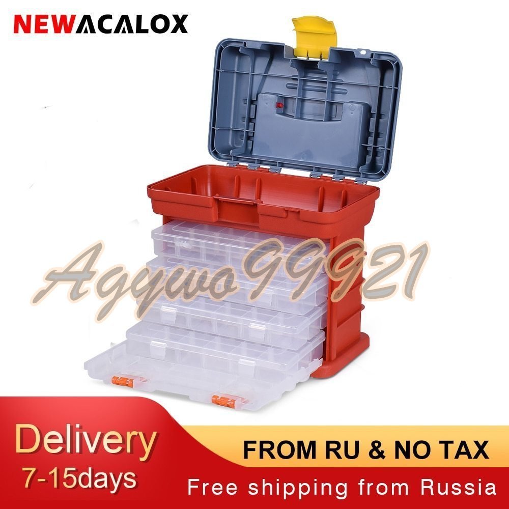 NEWACALOX 屋外 ツールケース 4 重層 釣具 ツール ネジ ハード ウェア プラスチック製の収納ボックス ロックハンドル